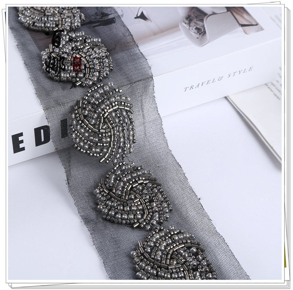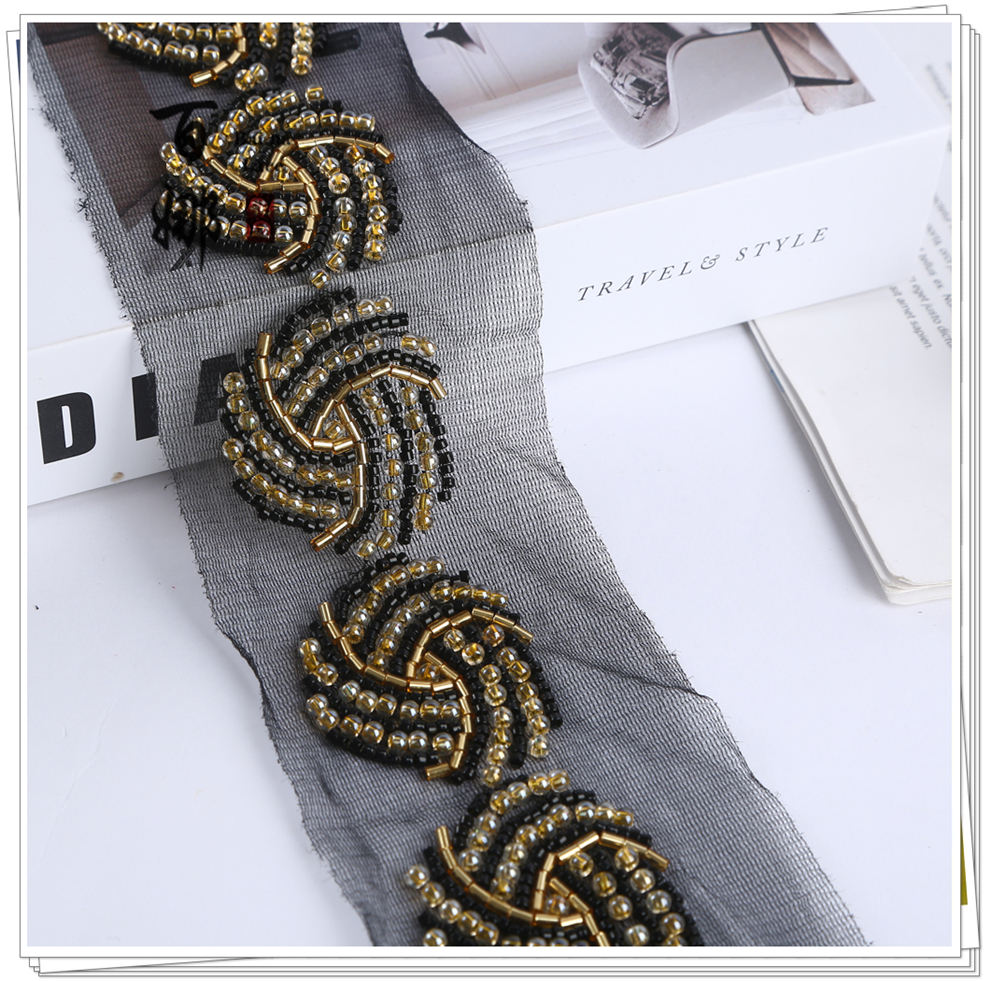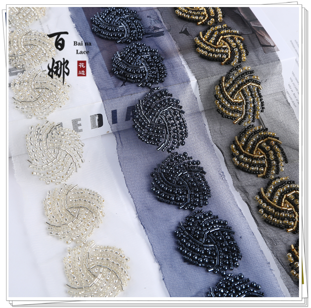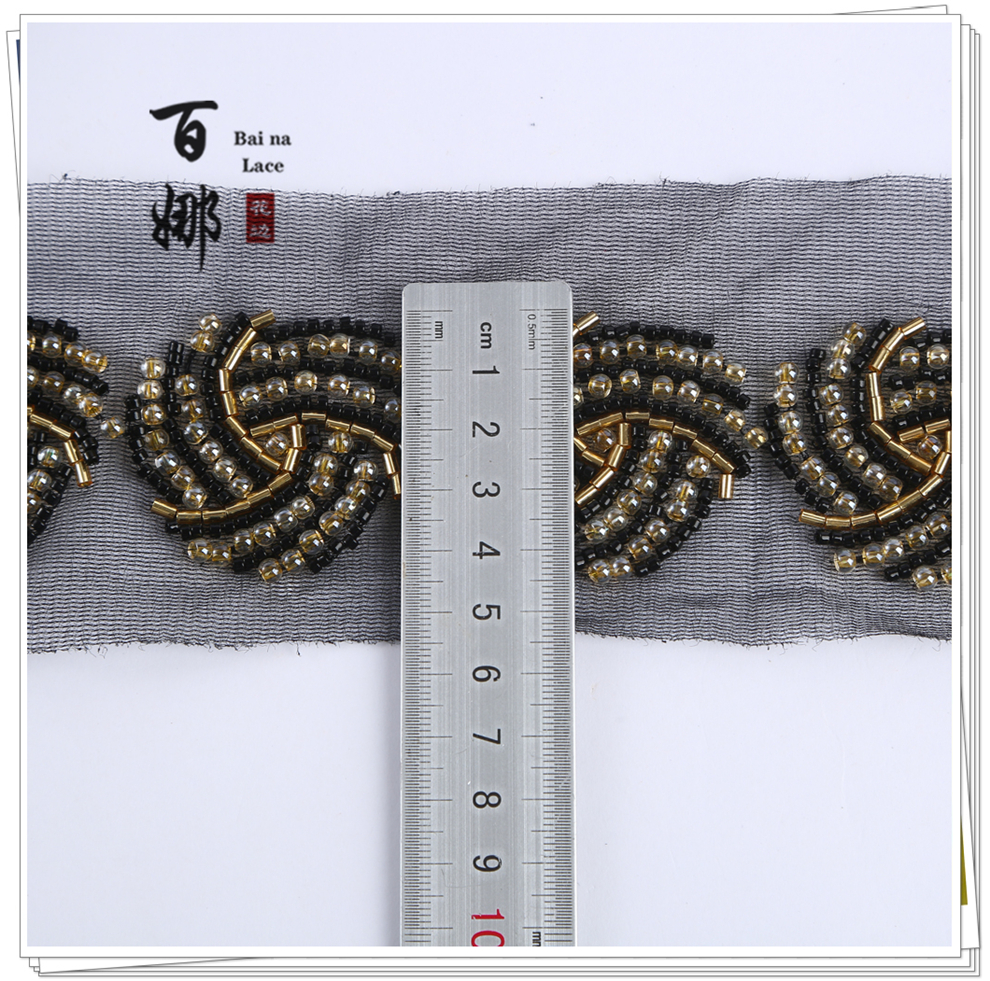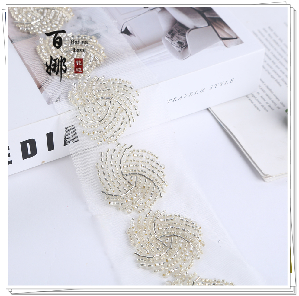 Product Name: Bina Lace 4.6cm Wide Beaded Tube Sequins Dense Lace Edging, Fashion Wedding Dress Decorative Netting Accessory, Weaving Belt