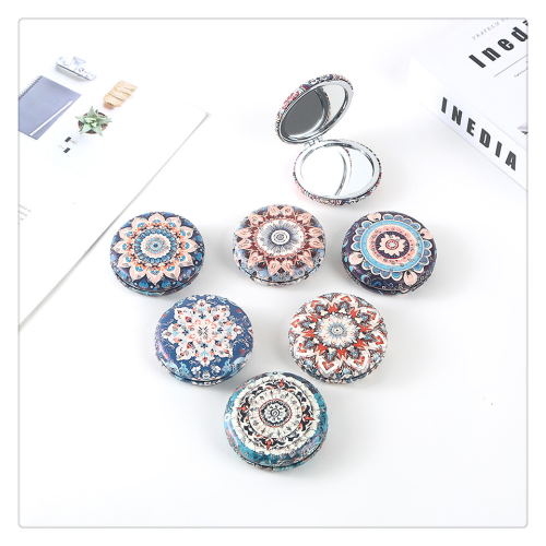 printed metal folding mirror wholesale handheld double-sided flip small round mirror portable convenient cosmetic mirror gift