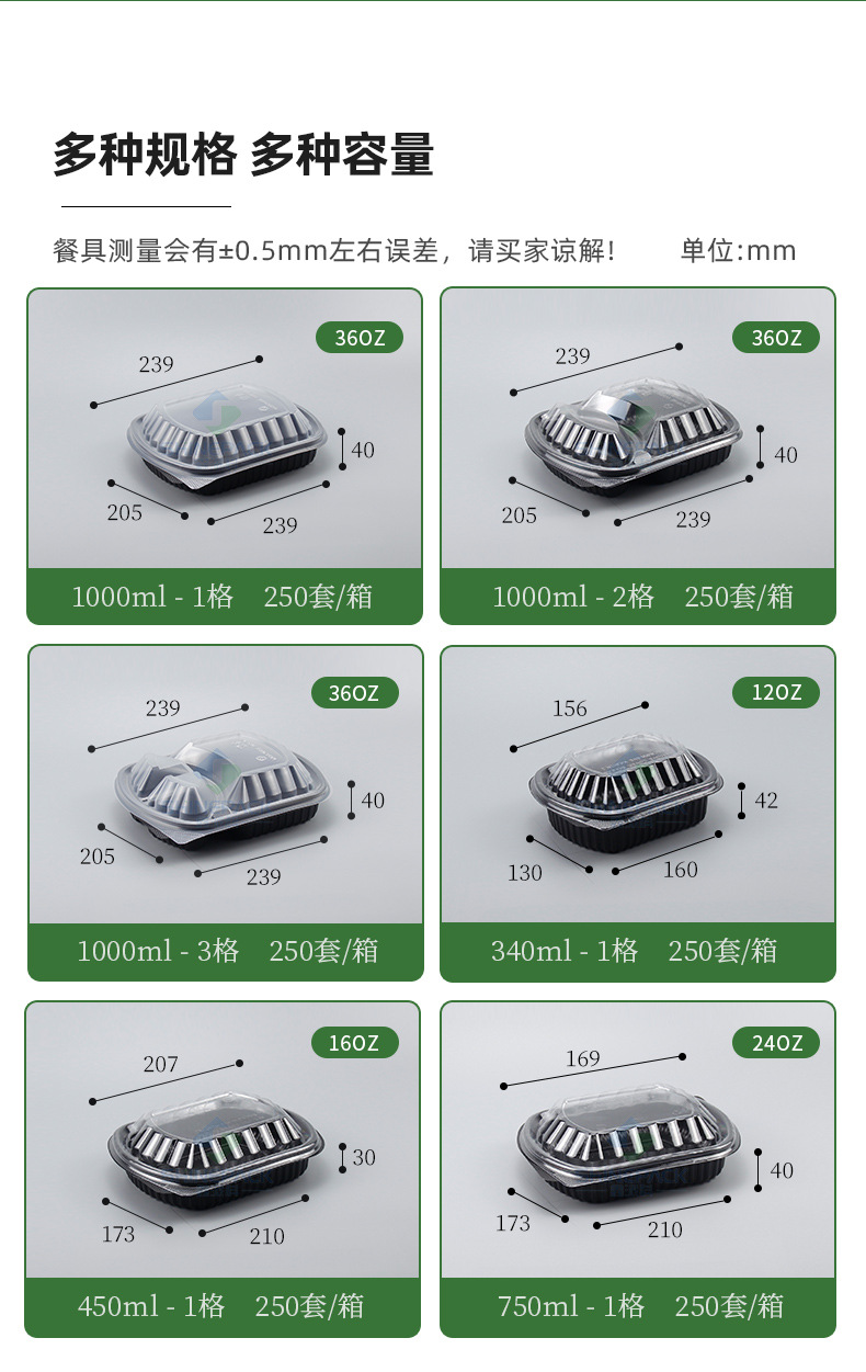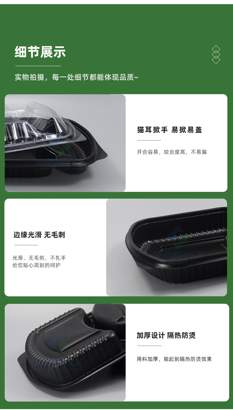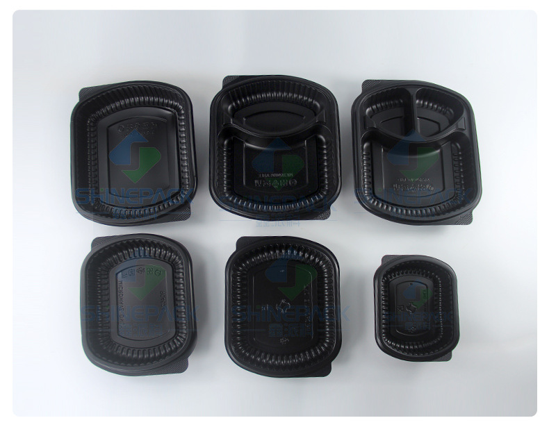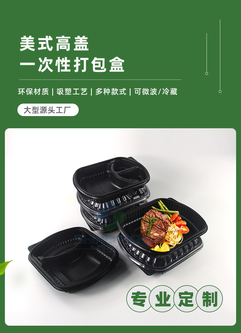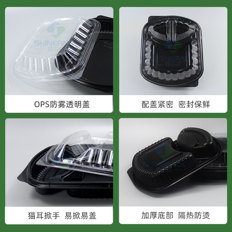 in stock disposable lunch box food grade takeaway packing box thickened black two-grid three-grid lunch box fast food lunch box 中文版