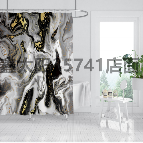 [xinsun] shower curtain punch-free partition curtain door curtain marbling waterproof mildew-proof digital printing bathroom curtain 中文版