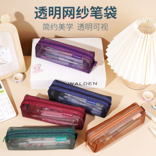 mesh pencil case stationery case pencil bag stationery pack transparent pencil case simple solid color pencil case 中文版