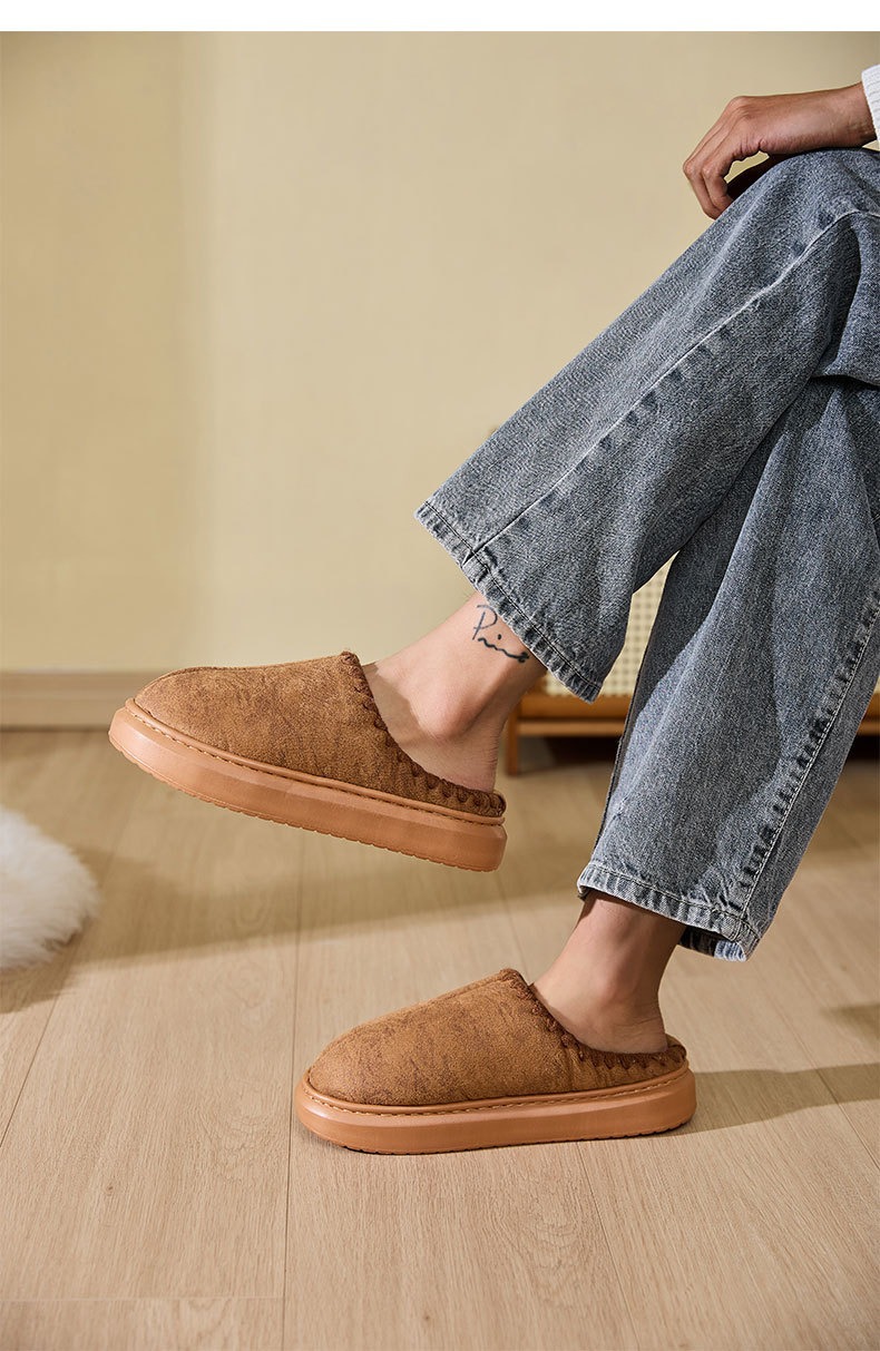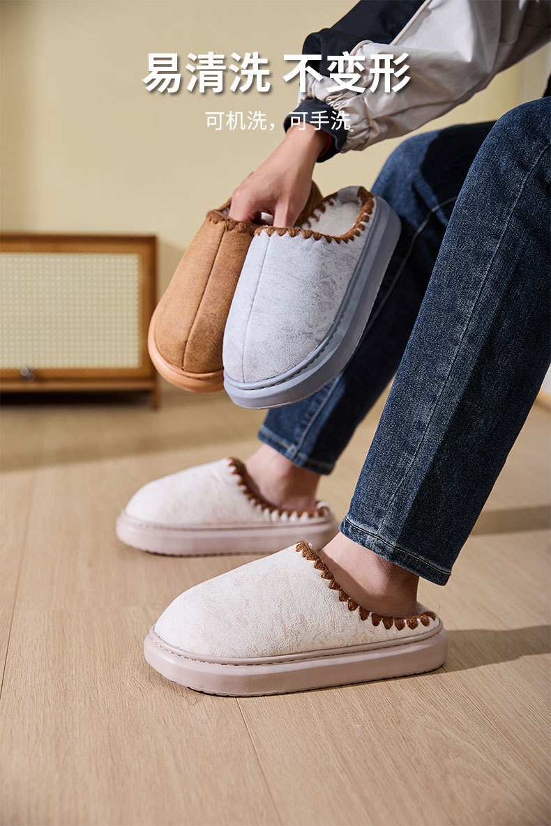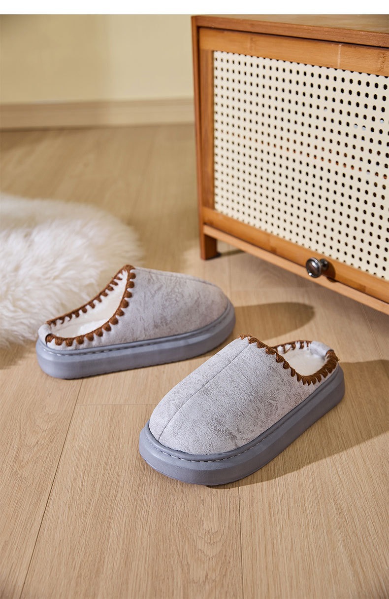 cross-border wholesale winter cotton slippers thermal home wear fleece-lined baotou fluffy slippers interior home 中文版