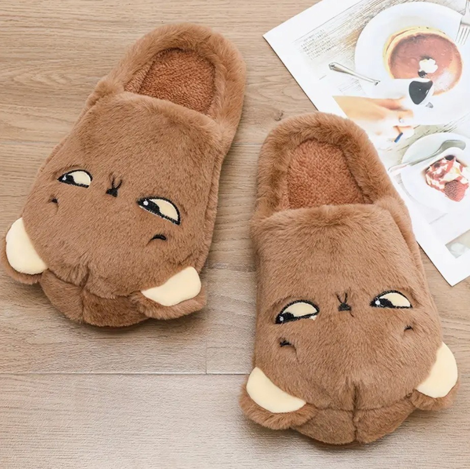 cute cartoon couple cotton slippers toddler children teens a family of three baby cotton slippers winter warm 中文版
