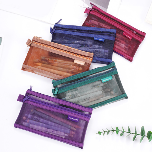 mesh pencil case transparent pencil case pencil bag stationery case stationery pack solid color pencil case simple 中文版