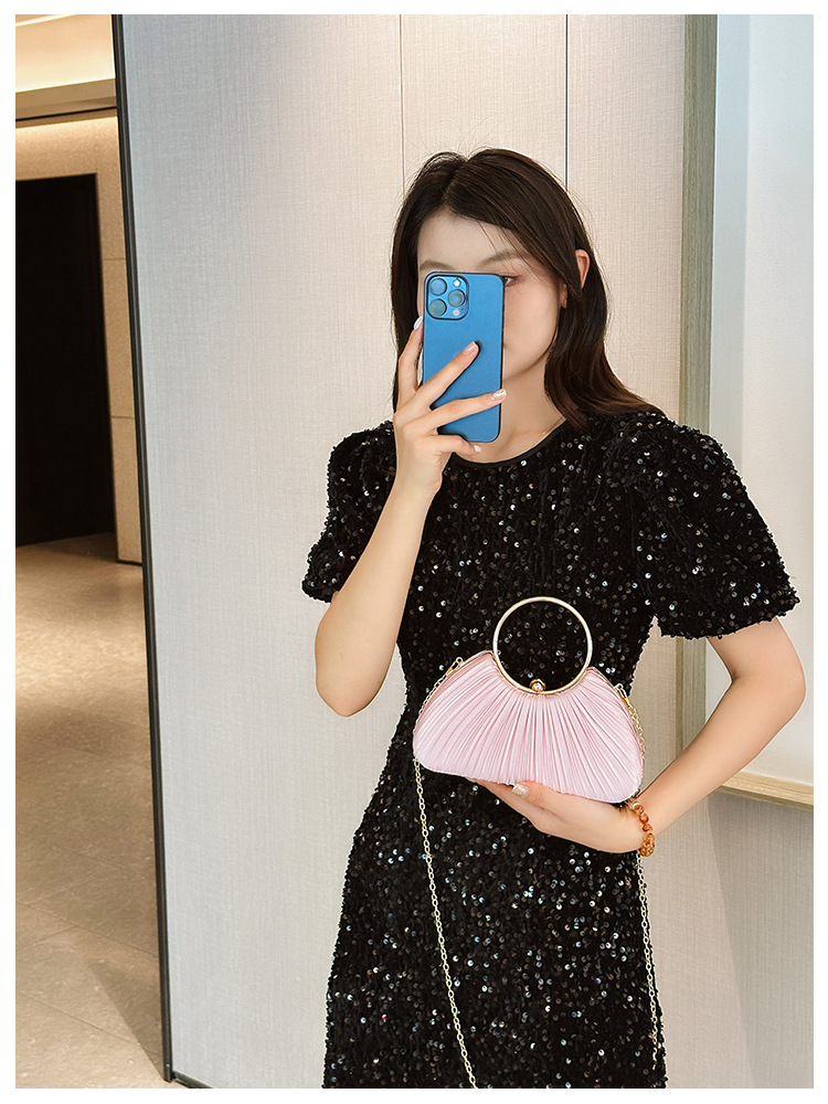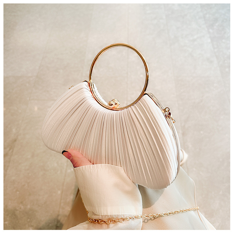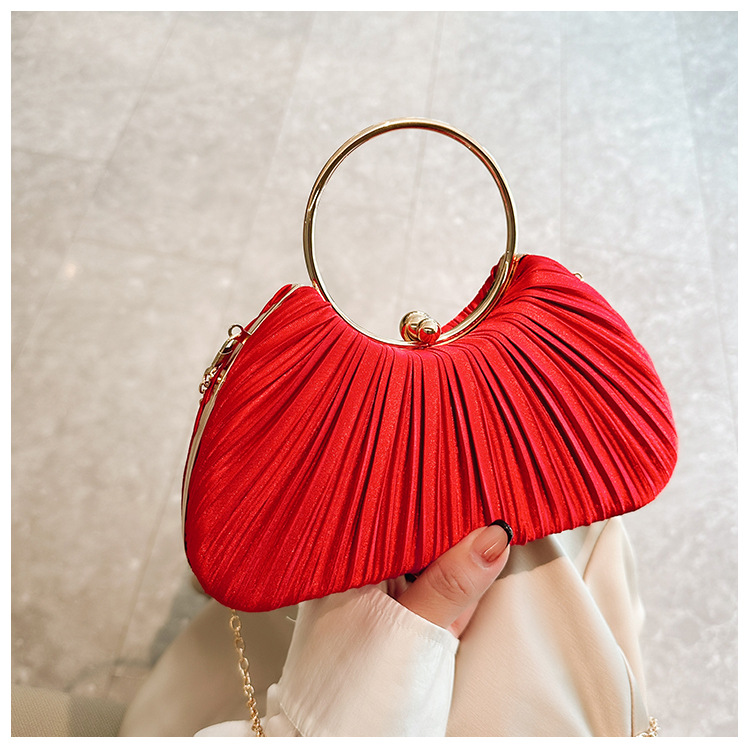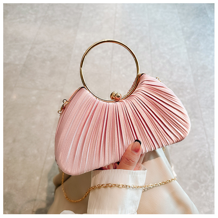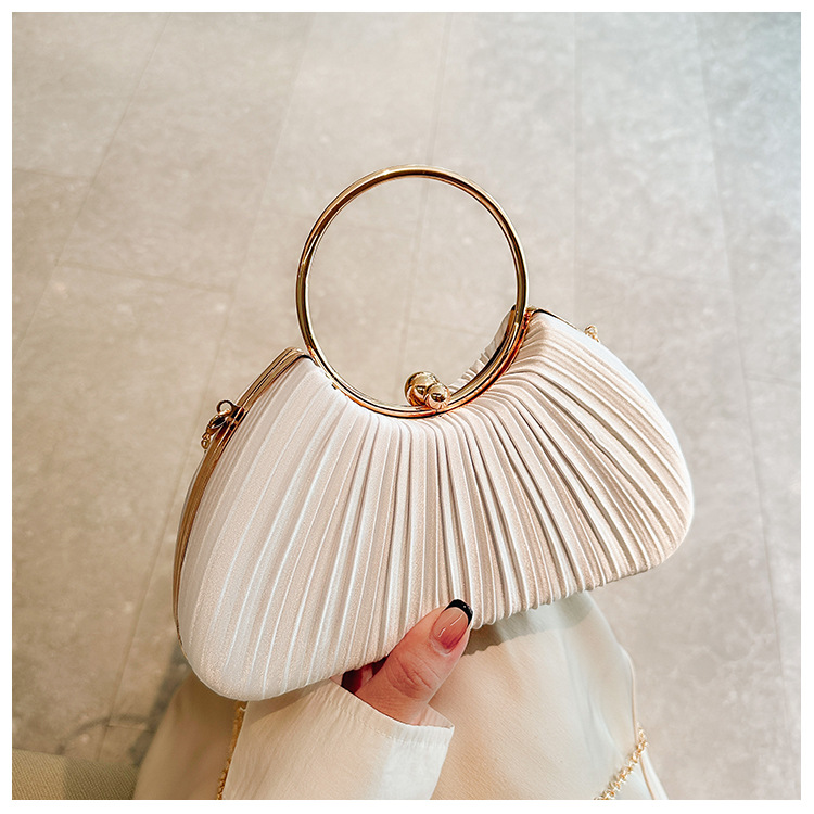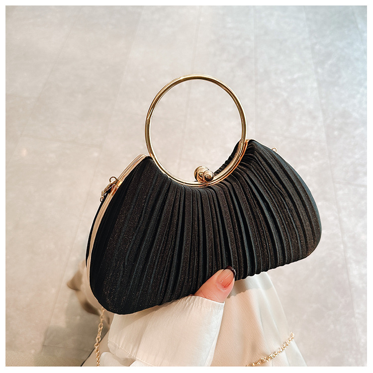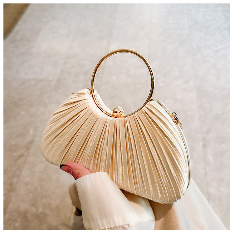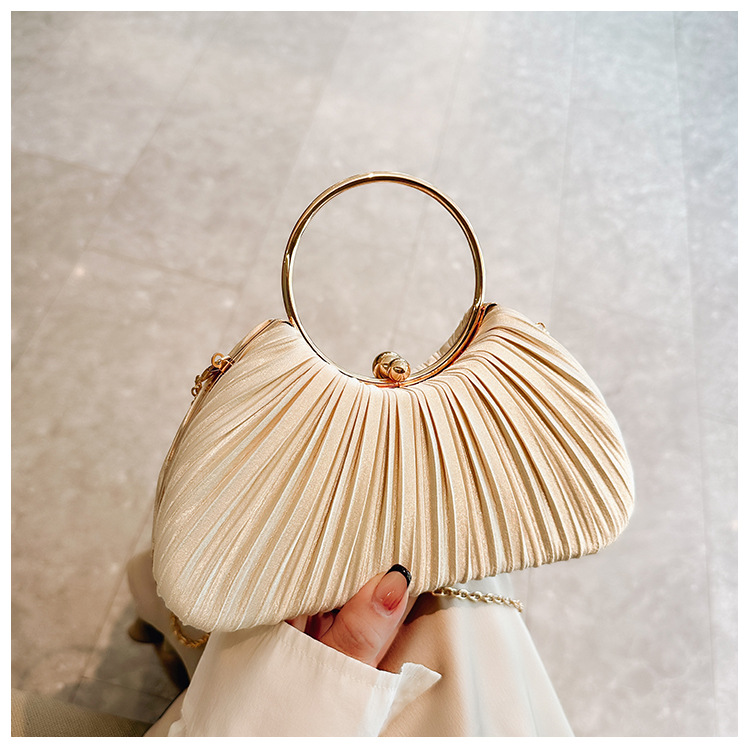 Cross-Border New Arrival Pleated Dinner Bag Women's Handbag Socialite Temperament Banquet Clutch Dress Garment Bag Ring Clutch 中文版