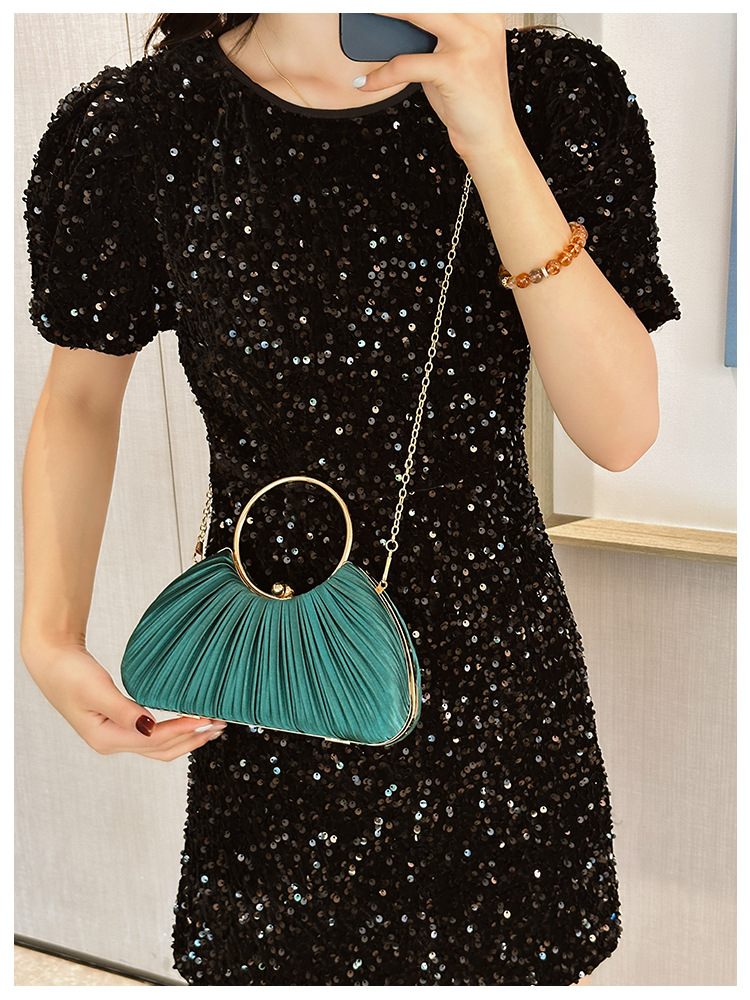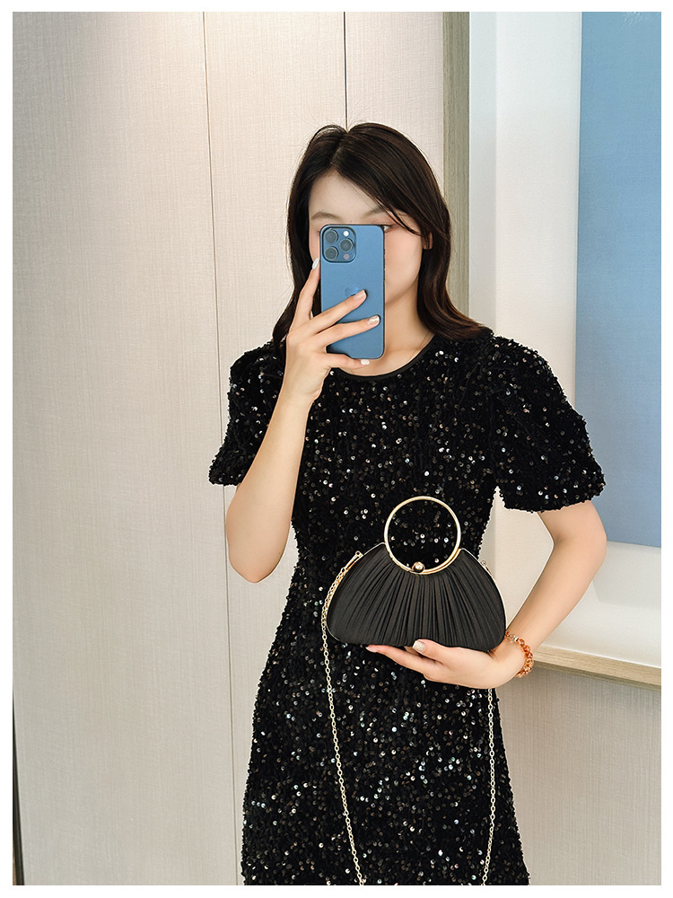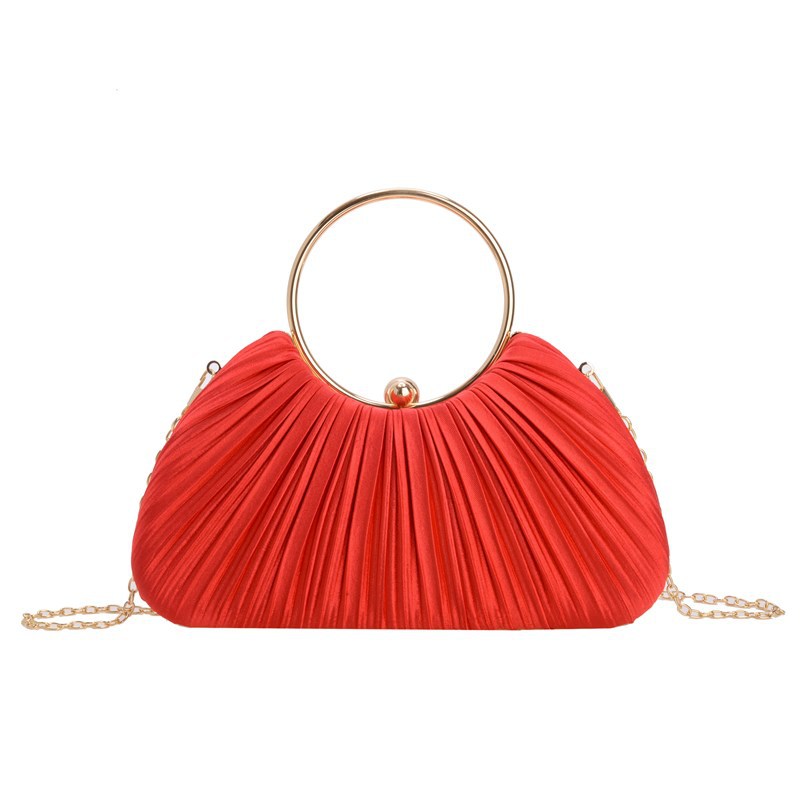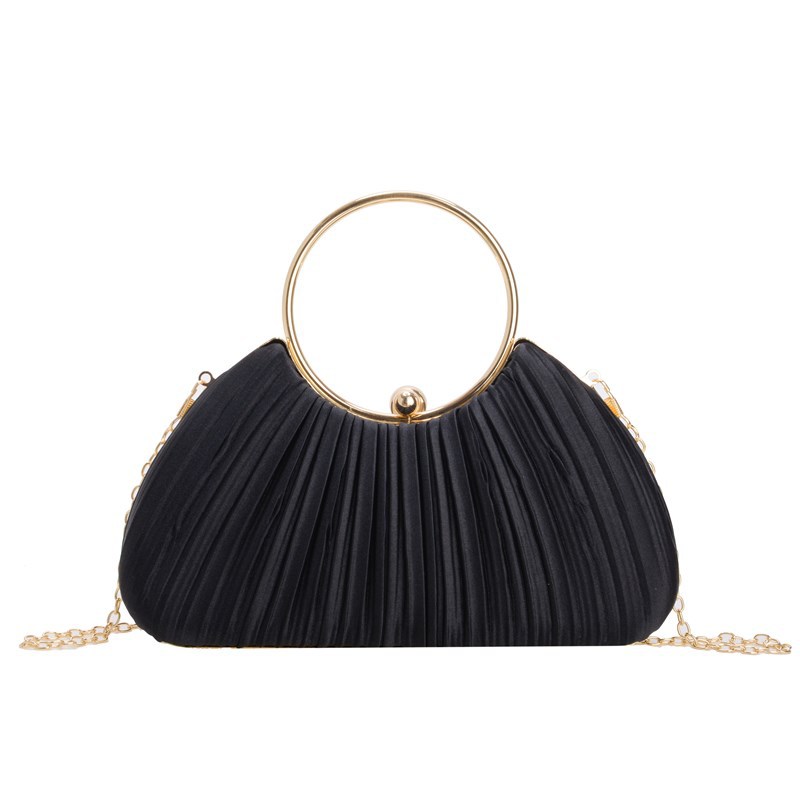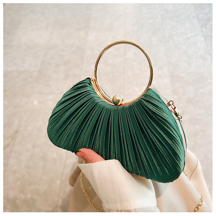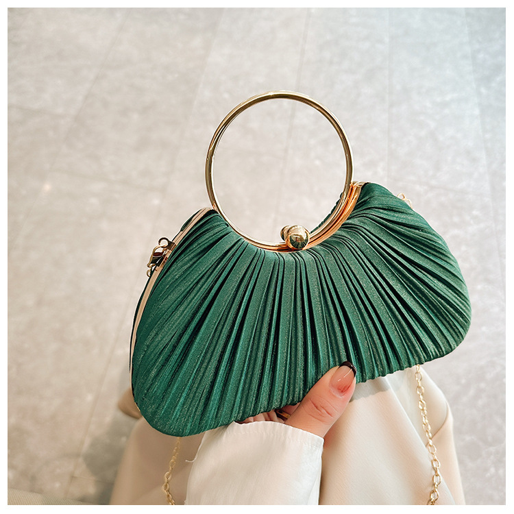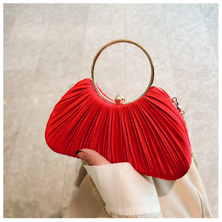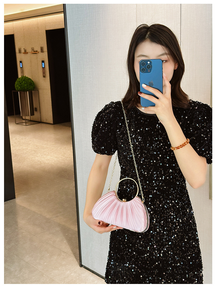 Cross-Border New Arrival Pleated Dinner Bag Women's Handbag Socialite Temperament Banquet Clutch Dress Garment Bag Ring Clutch 中文版
