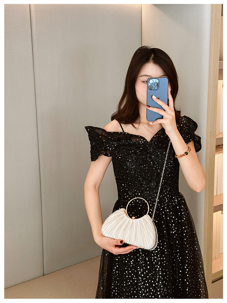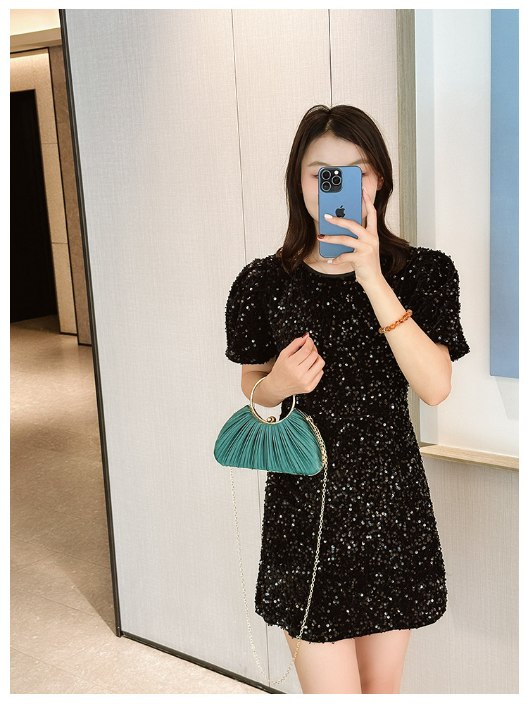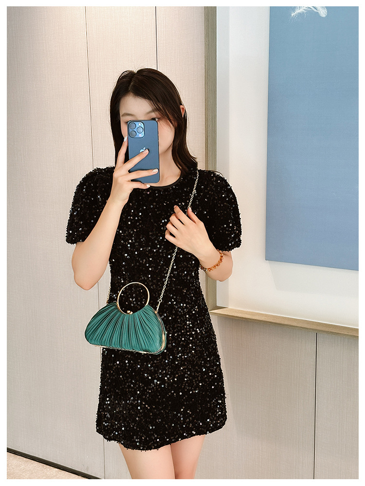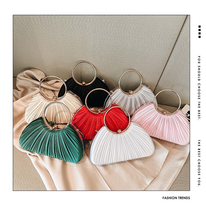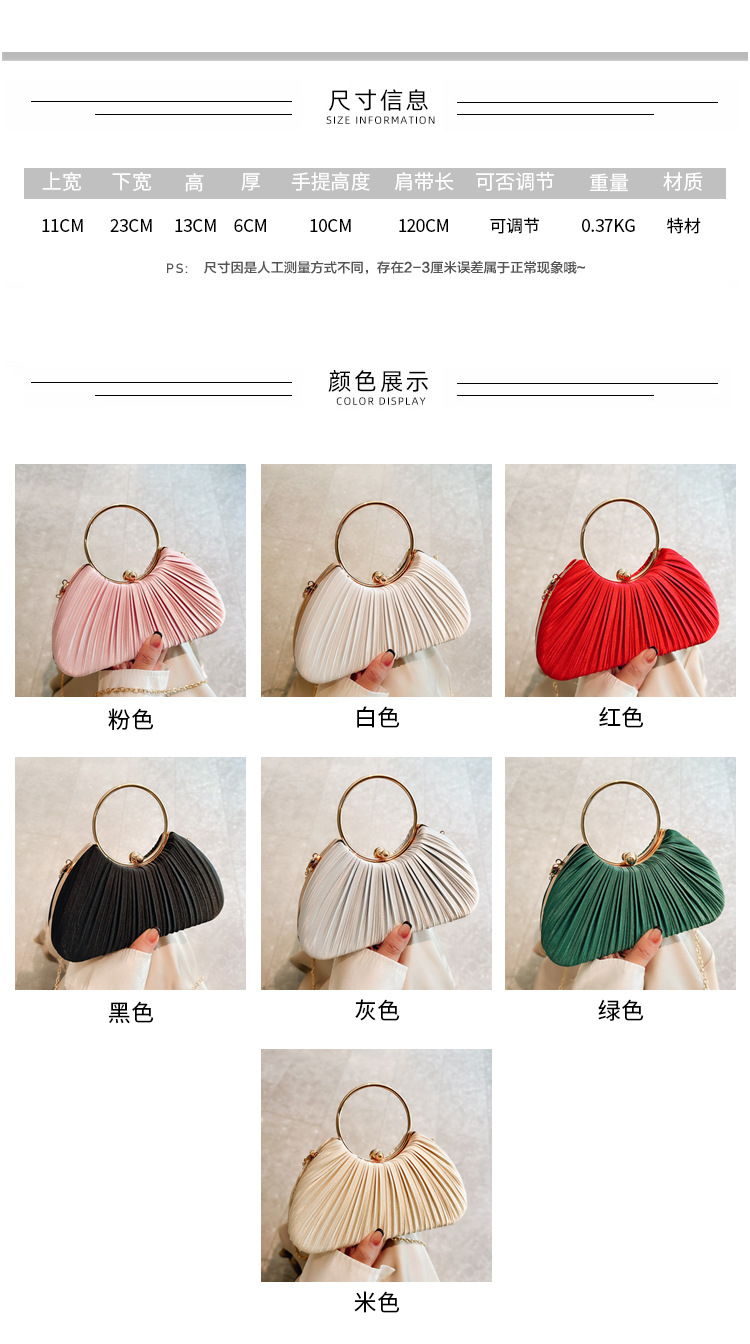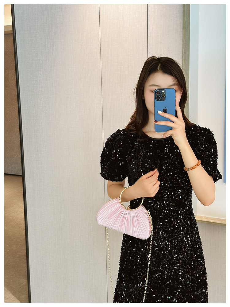 Cross-Border New Arrival Pleated Dinner Bag Women's Handbag Socialite Temperament Banquet Clutch Dress Garment Bag Ring Clutch 中文版