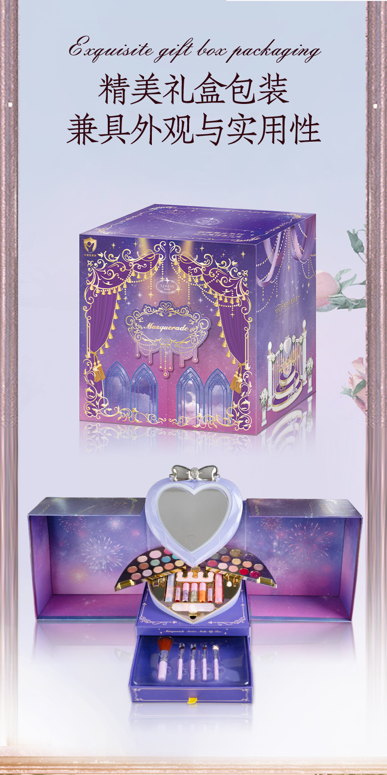 22920T Du Lisha Masked Ball Series Glitter Magic Mirror Cosmetic Boxes in Packs (Units): 4
