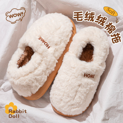poop feeling cotton slippers women's winter new bag heel indoor home non-slip thick bottom fleece-lined 中文版