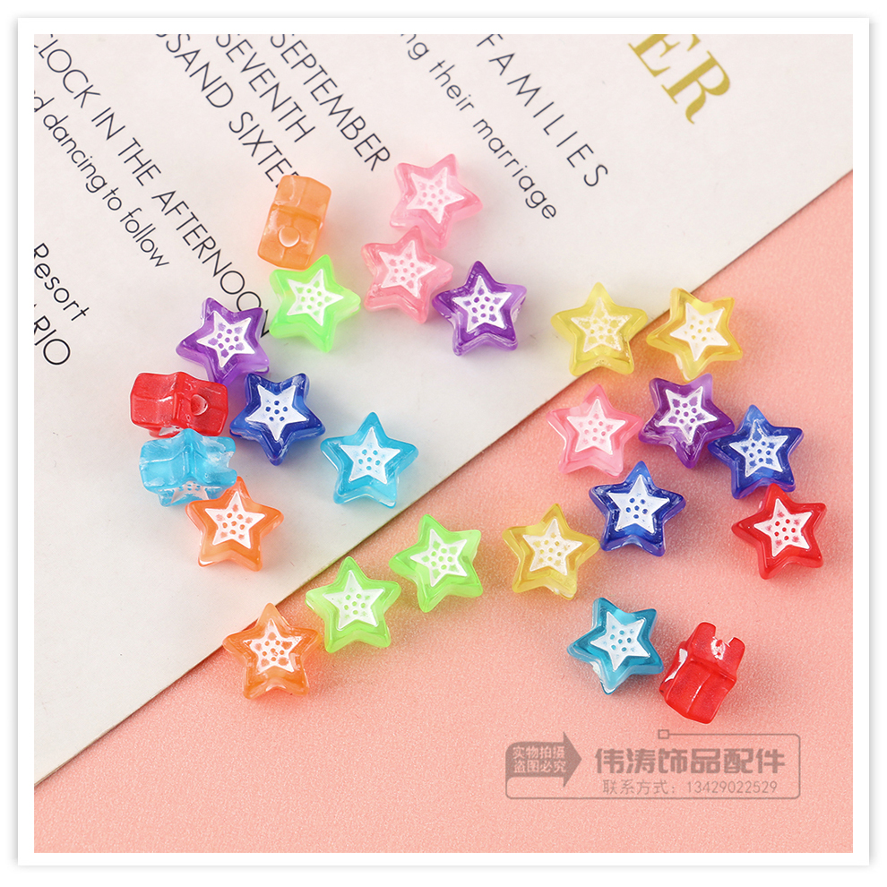 cross-border new acrylic five-pointed star beads double-color beads scattered beads handmade diy mobile phone charm pendant accessories wholesale 中文版
