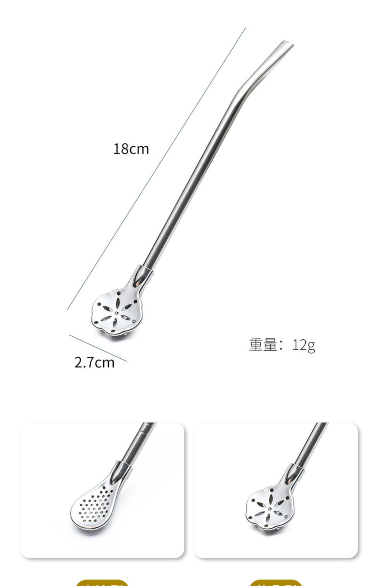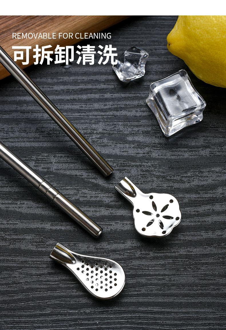 lengthened straw spoon 304 stainless steel milk tea stir filter double-use environmental protection thick metal non-disposable