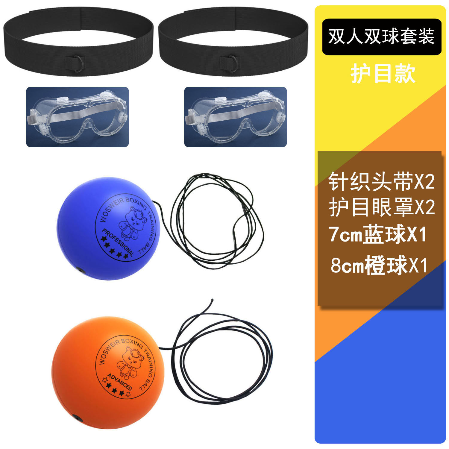 【头带+橙球+黄球+护目镜】单人双球入门训练