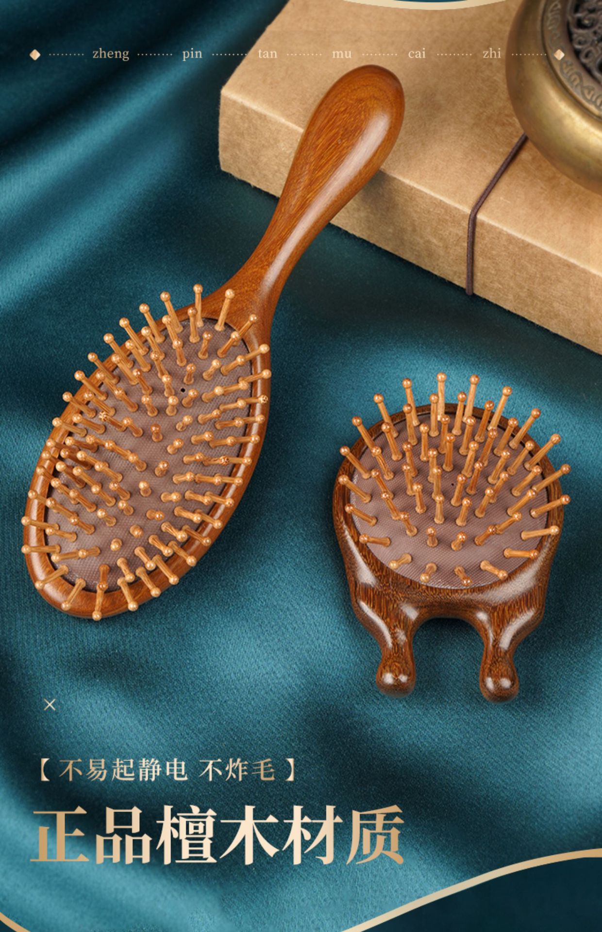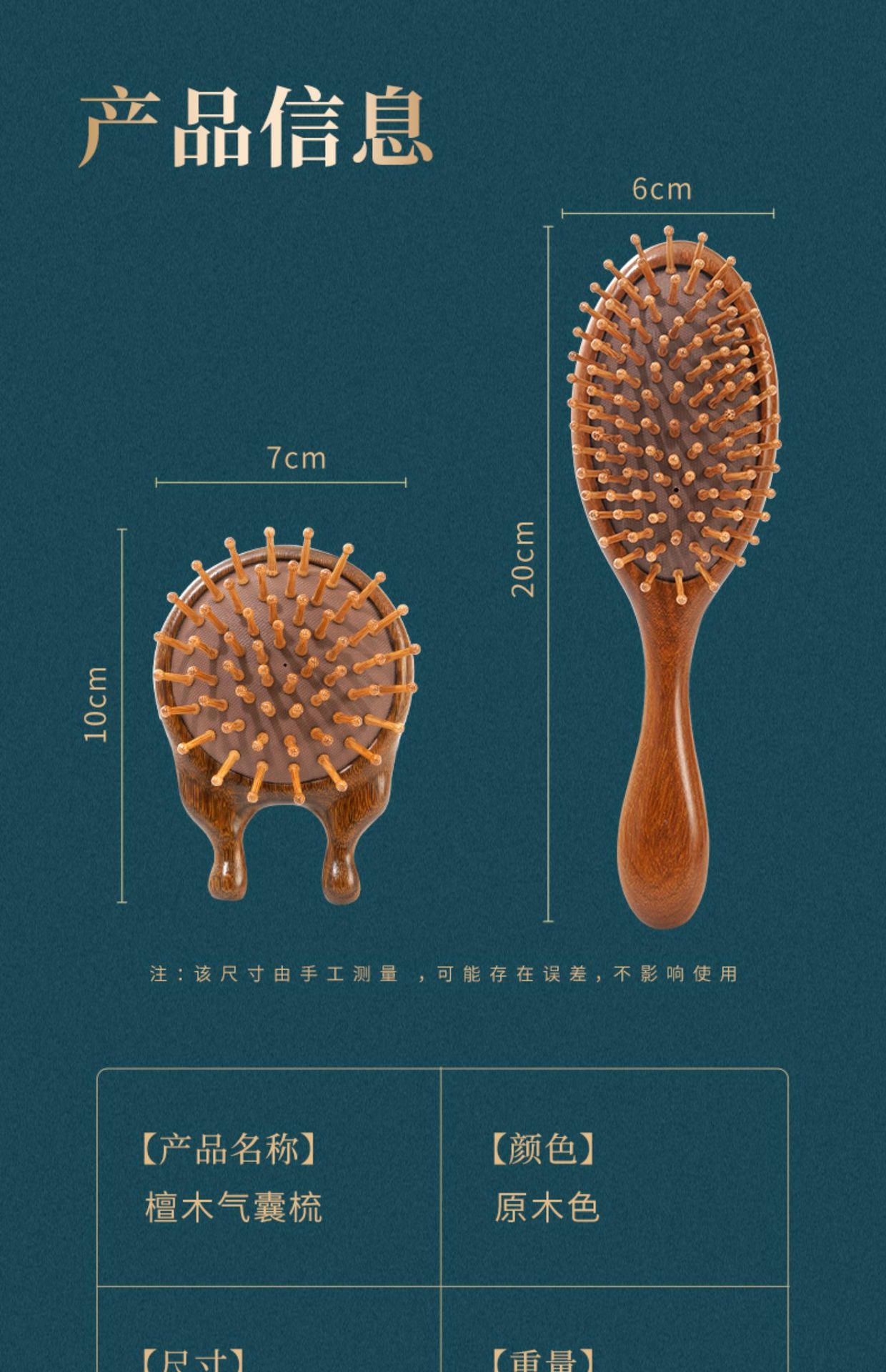 air cushion comb long handle + red sandalwood toothed round handle