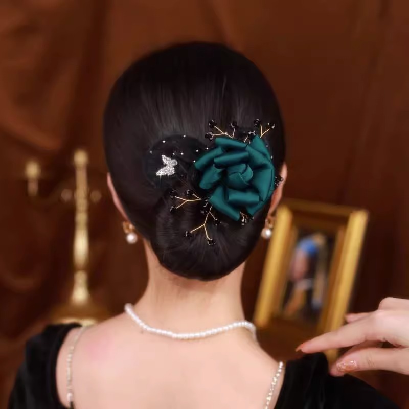 dark green-rose hair band banana clip