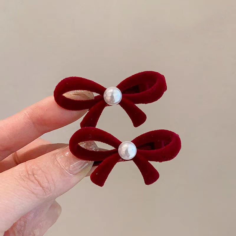 bow pearl barrettes (red) t0550a