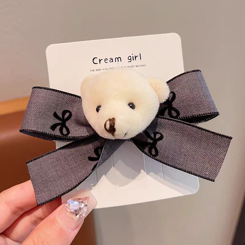 bear bow barrettes (gray) t0766a