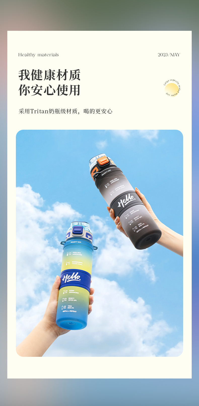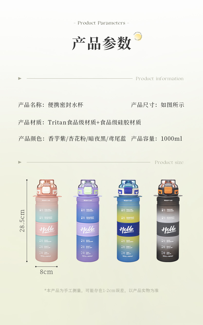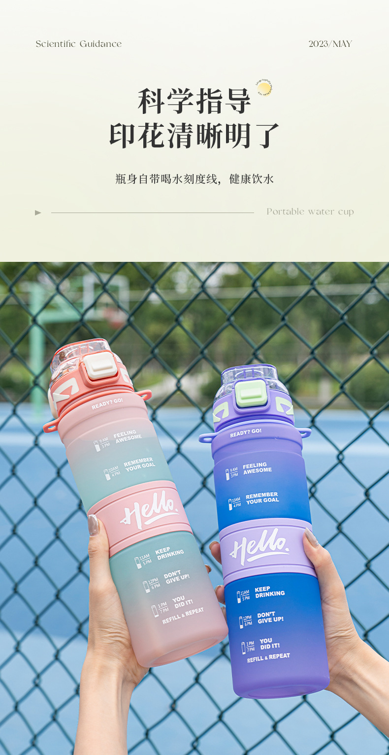 【Product Name】: Gradient Color Sports Water Bottle 720ML 800ML 1000ML