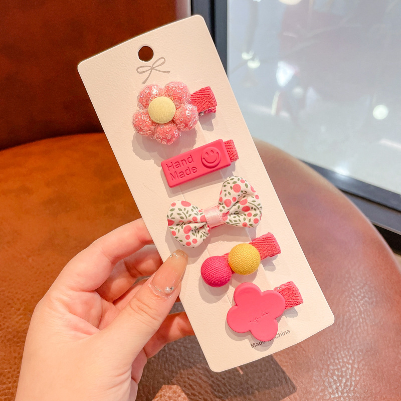 7# pink small flower children's barrettes (14-piece set)