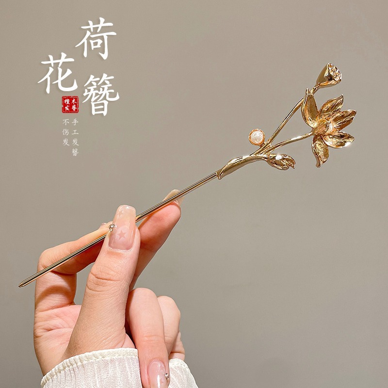 72#荷花簪-金#