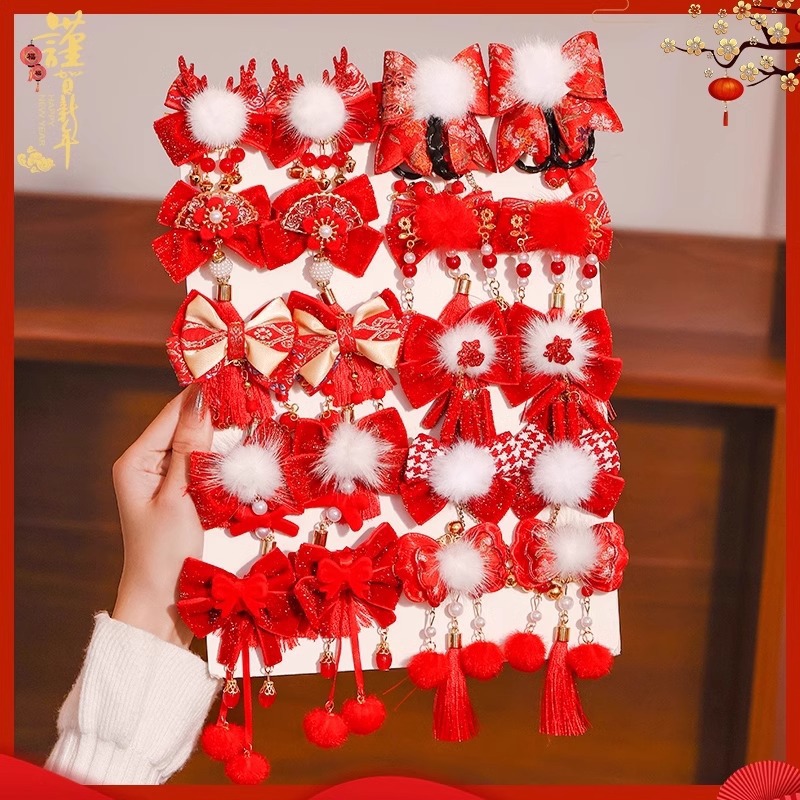 14#红色毛球蝴蝶结鞭炮流苏对夹