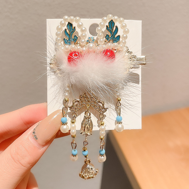 antlers white fur ball double bow bell a pair of hairclips#