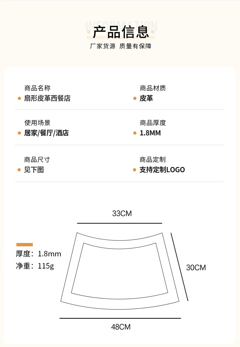 | 48 * 30cm (fan-shaped placemat) | ¥0.0 | 14999 piece available |