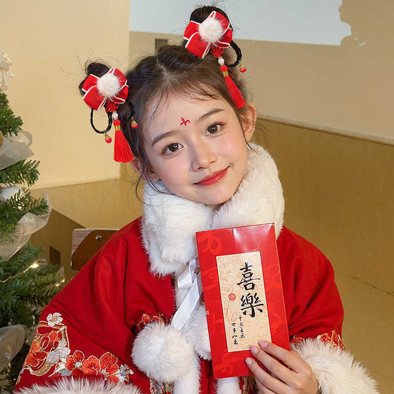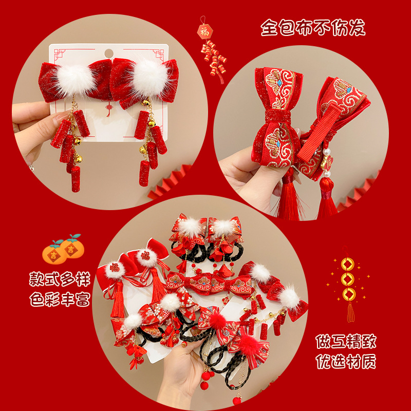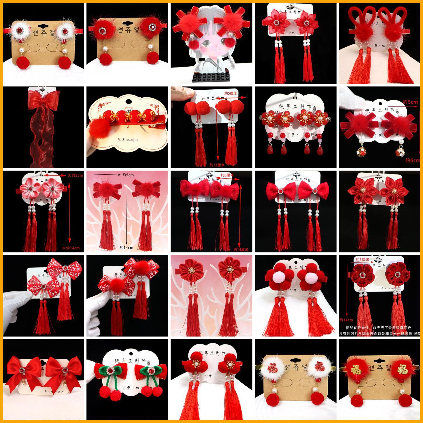 14# red pom-poms bowknot firecrackers tassel a pair of hairclips