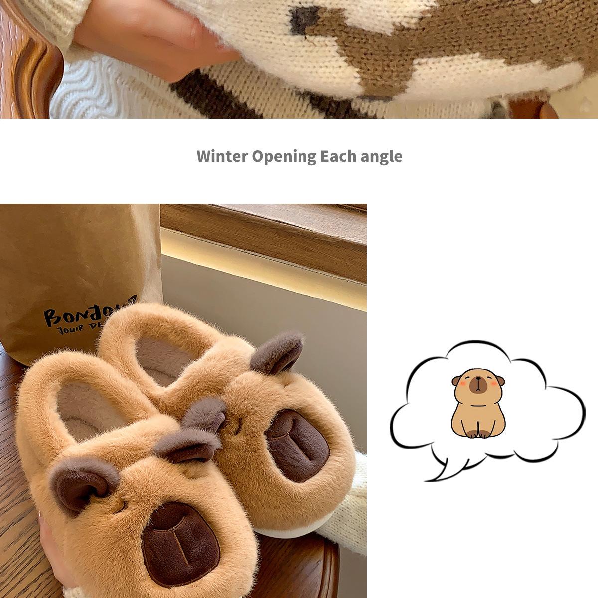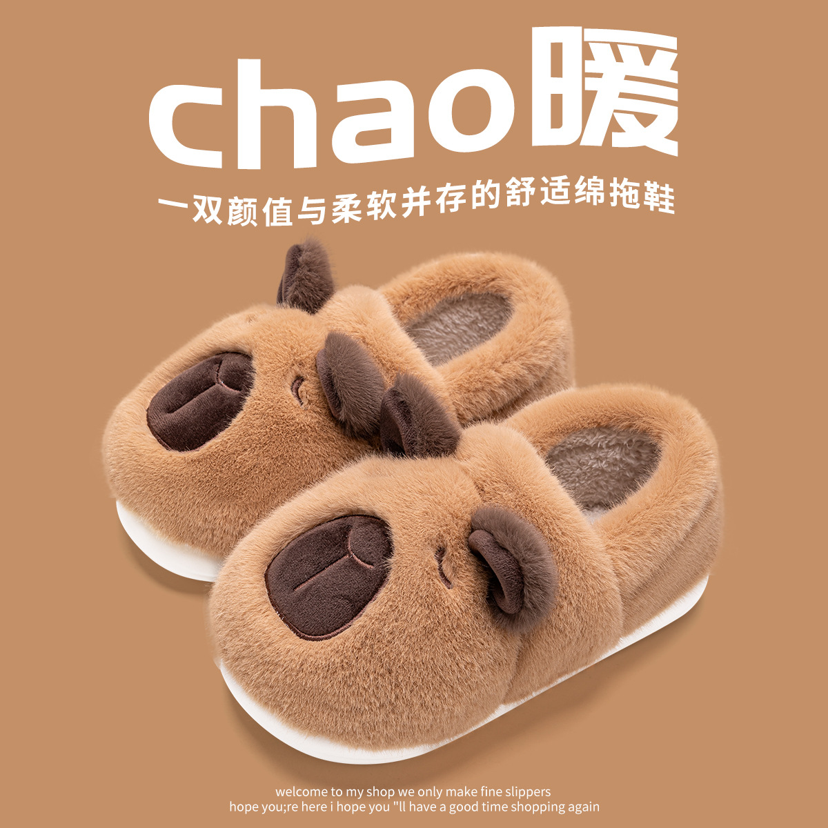 kappabala cotton shoes men's indoor home non-slip warm couple household soft bottom winter capybara 中文版