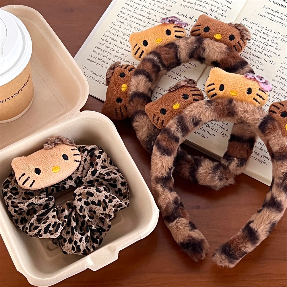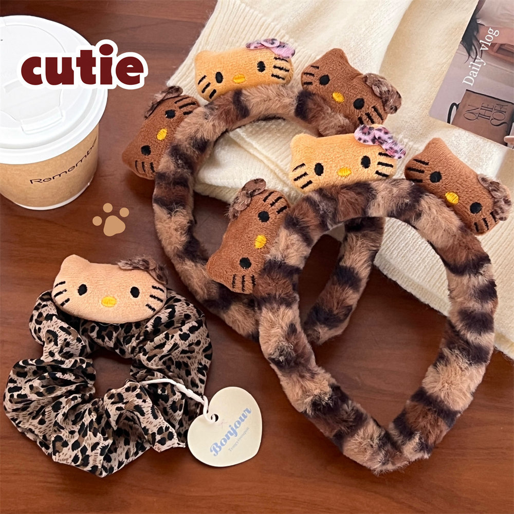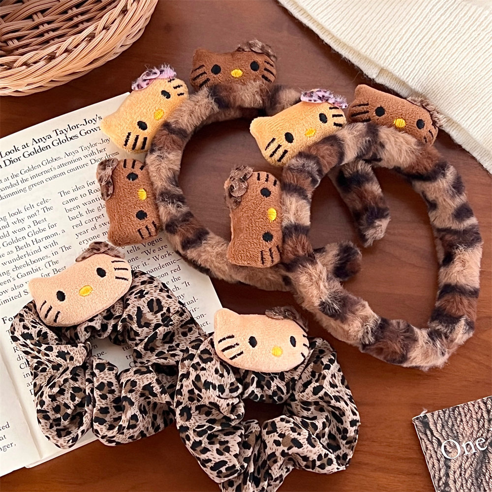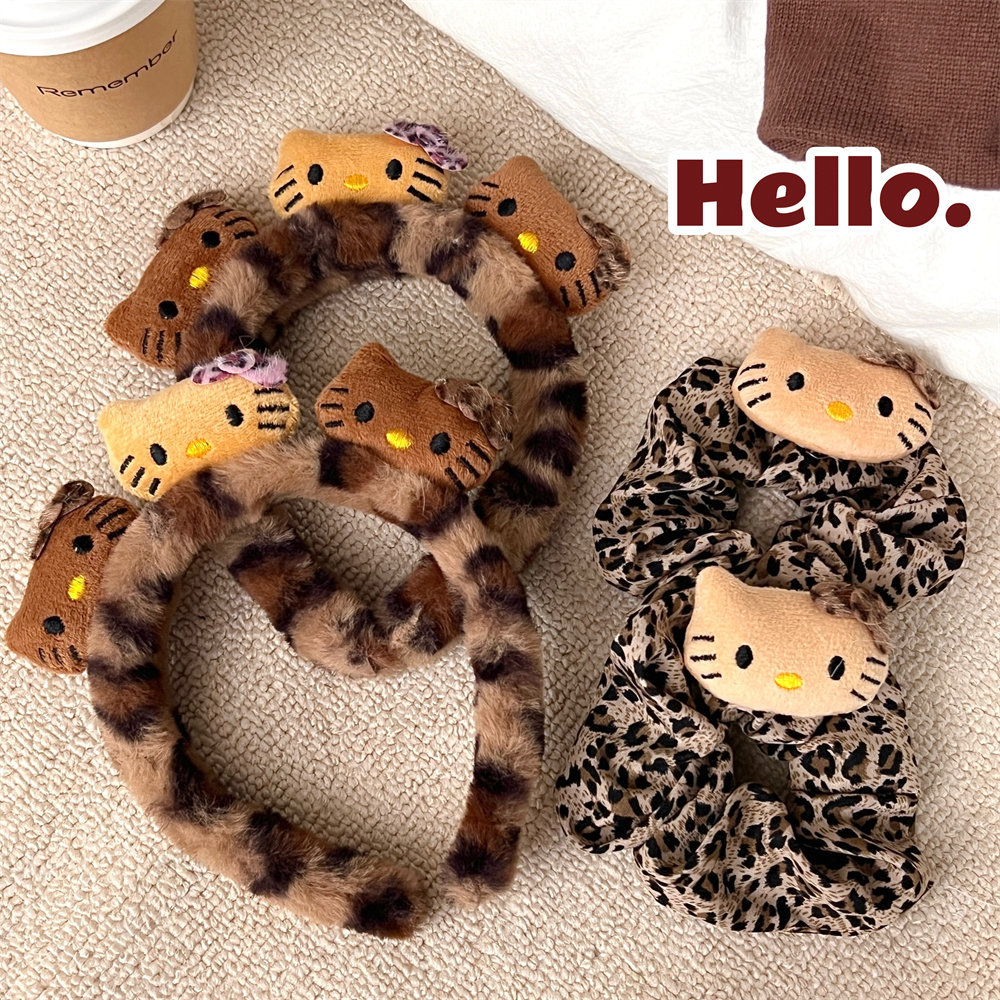 1# leopard print white leather kt plush hair ring