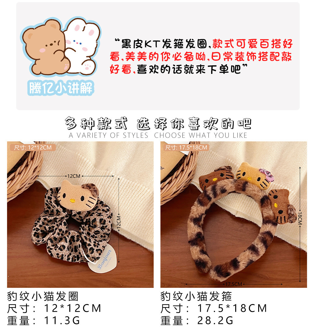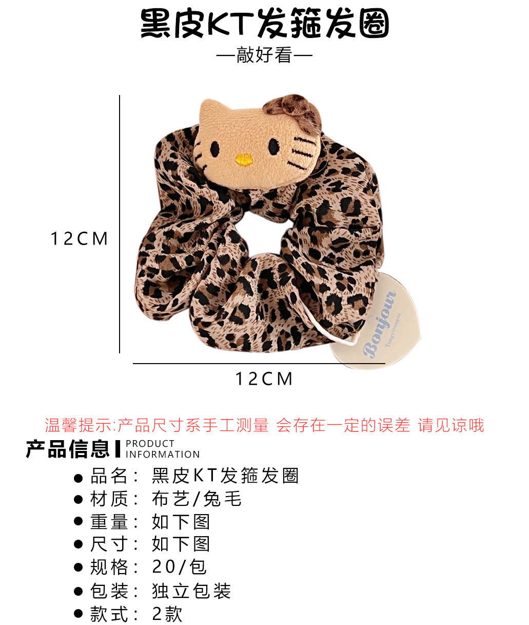 2# leopard print black leather kt plush hair ring