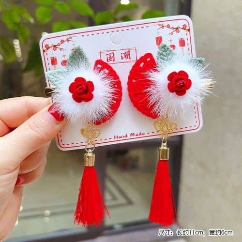 han chinese clothing hair accessories children's archaistic headdress girls' flower tassel butterfly hairpin sweet baby girls' chinese style a pair of hairclips 中文版
