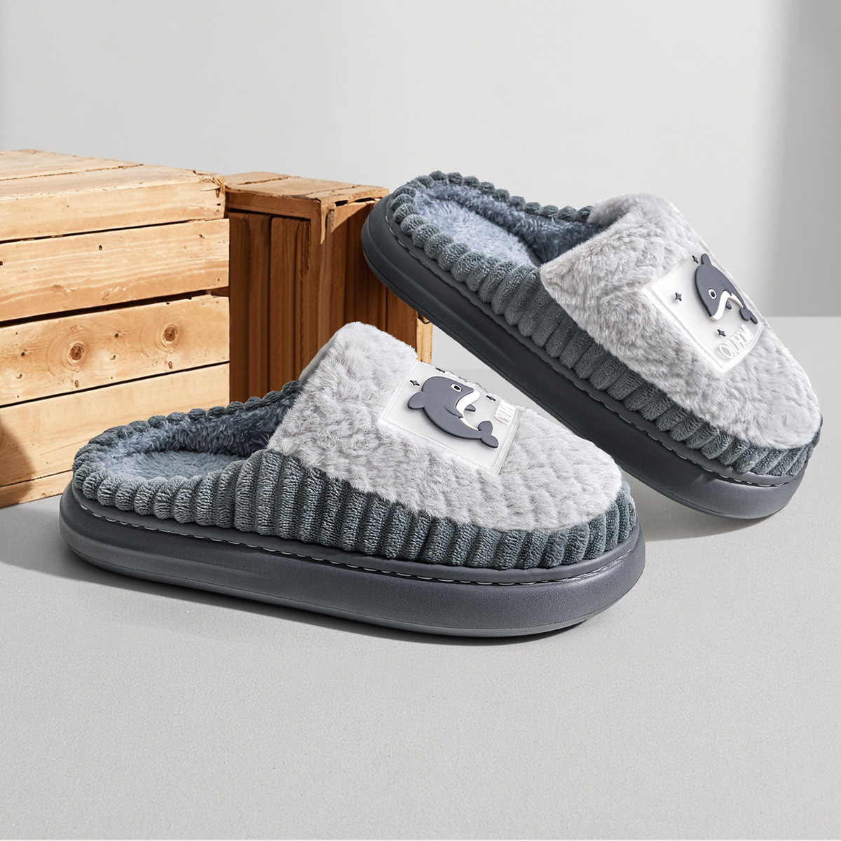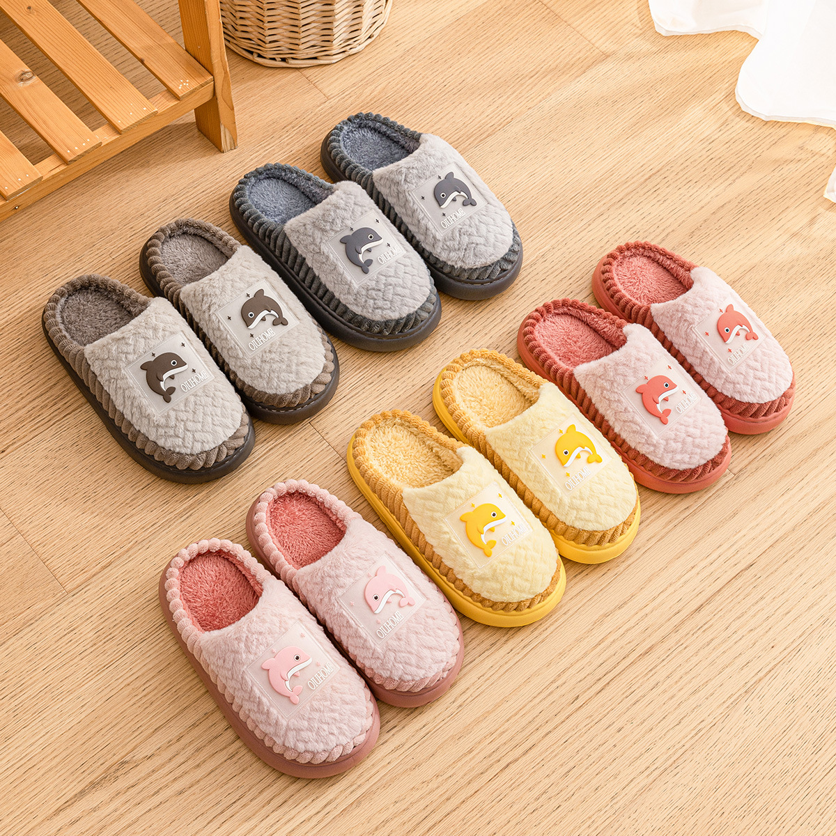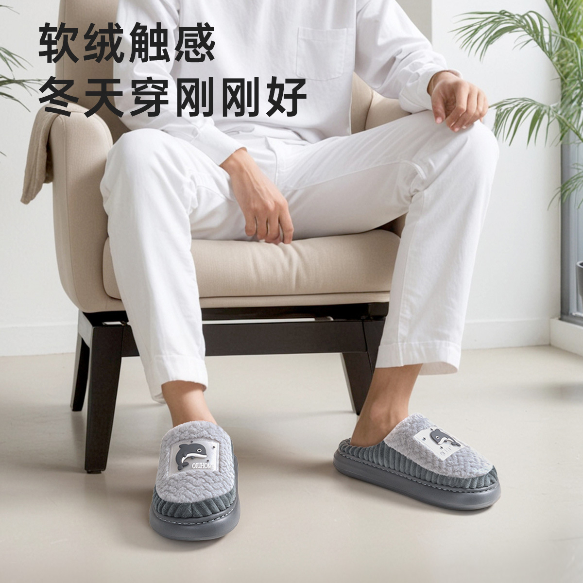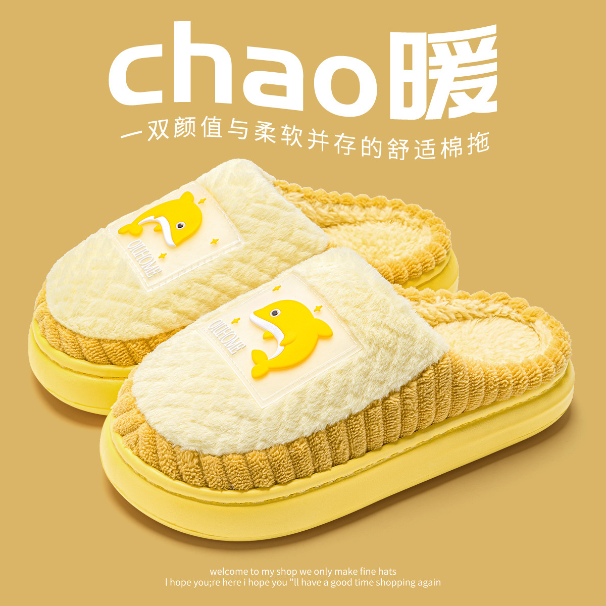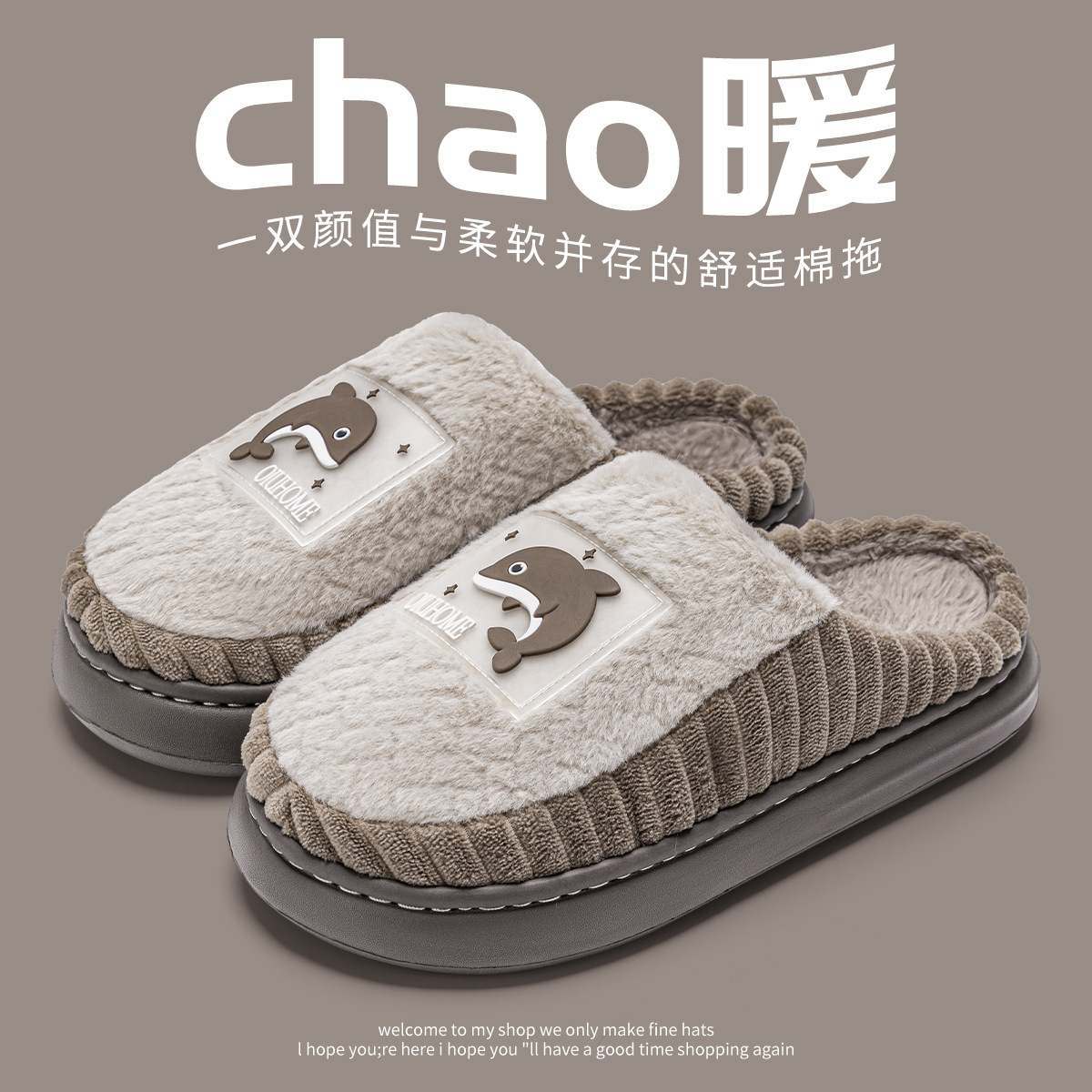 shit feeling cotton slippers men's winter 2024 new interior home warm plush slippers women's home non-slip 中文版
