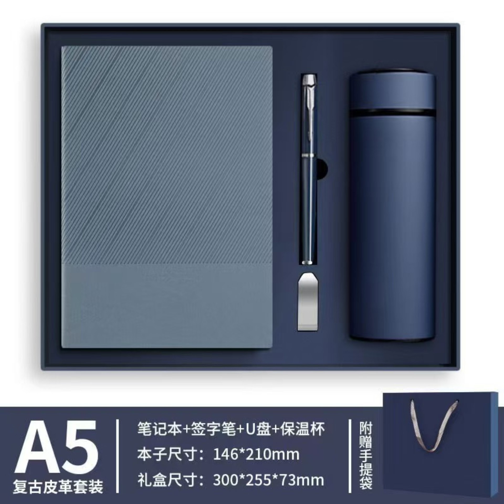 A5雾霾蓝【笔+U盘+保温杯】