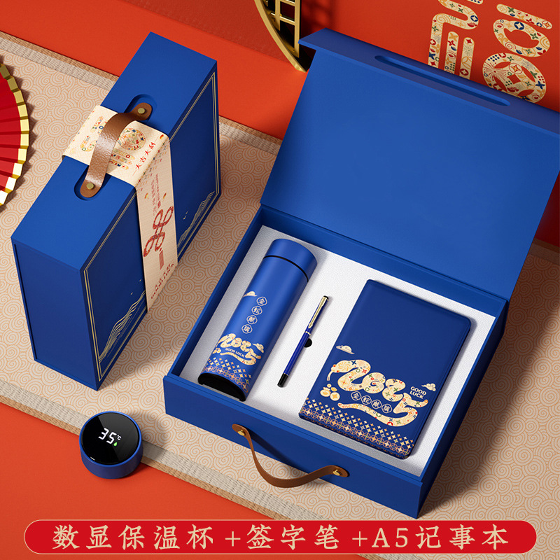 保温杯+笔+笔记本-蓝色