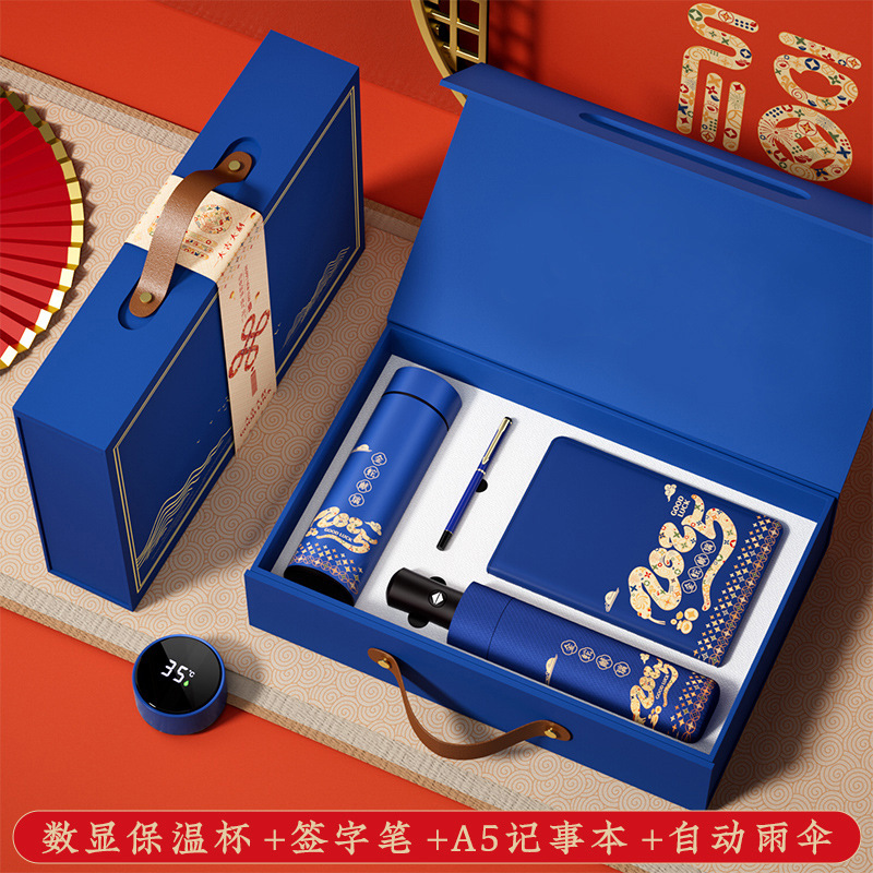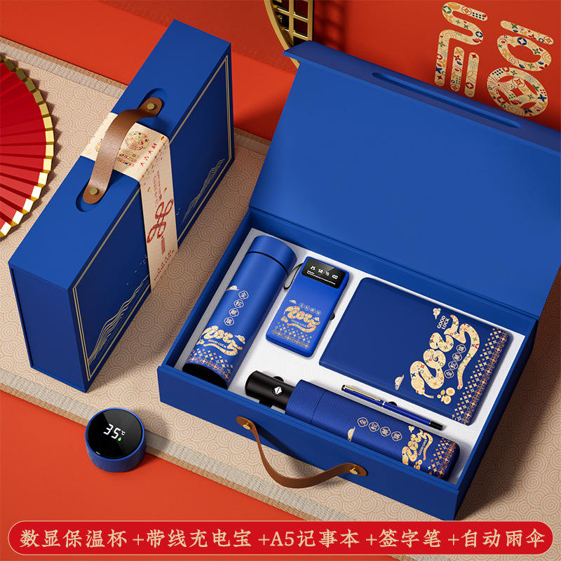 保温杯+雨伞+充电宝+笔+笔记本-蓝色