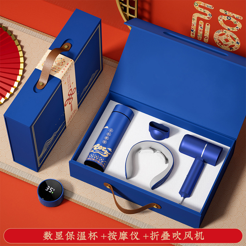保温杯+护颈仪+吹风机-蓝色