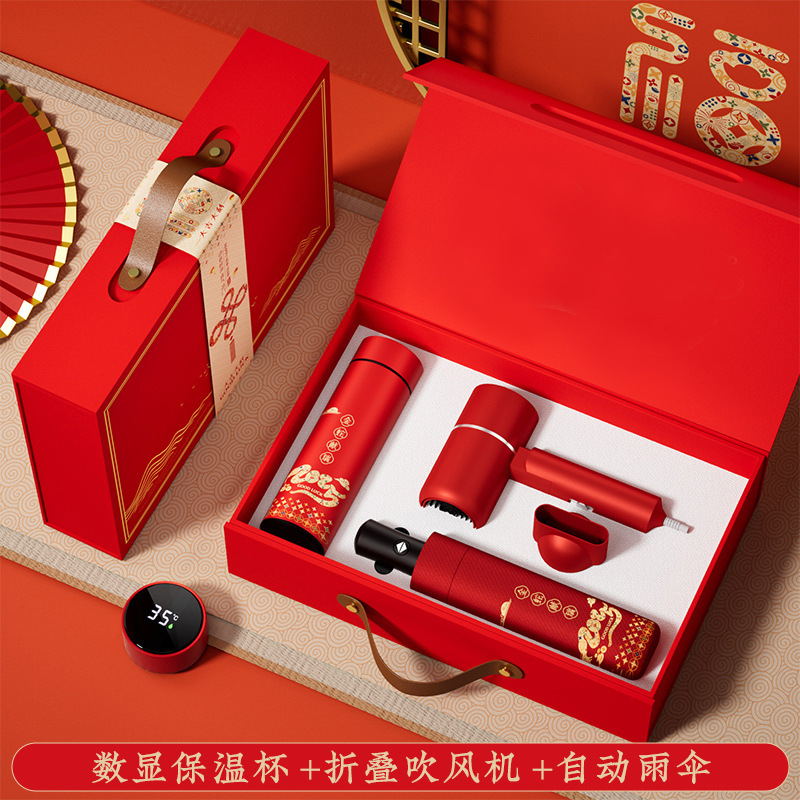 保温杯+雨伞+吹风机-红色