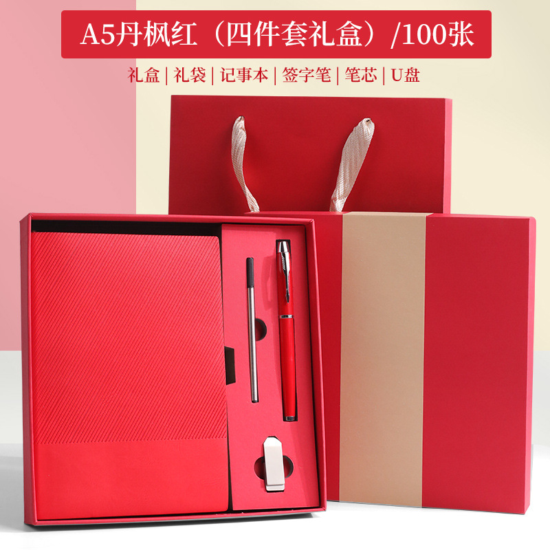 A5斜纹软装-丹枫红【笔+笔芯+U盘16G】