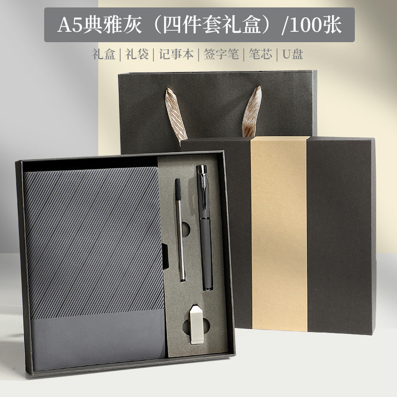 A5斜纹软装-典雅灰【笔+笔芯+U盘16G】