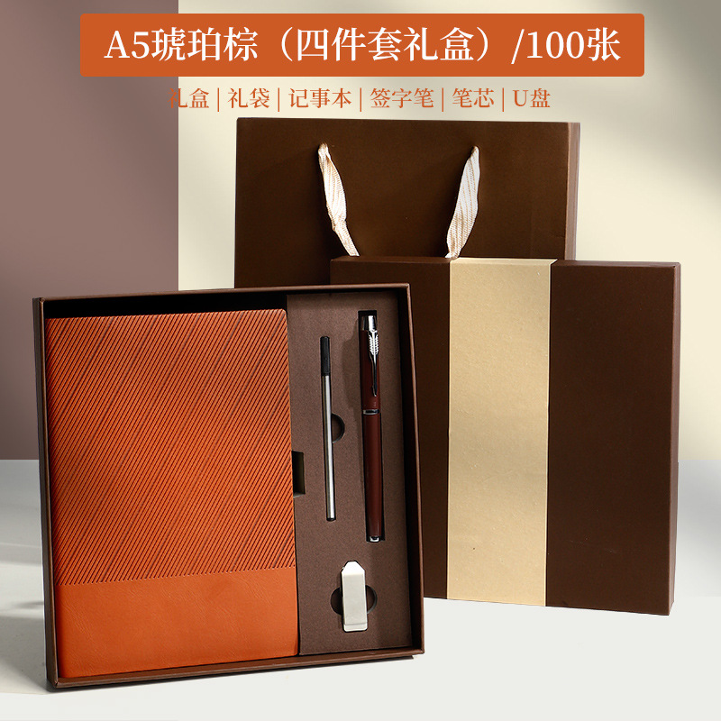 A5斜纹软装-琥珀棕【笔+笔芯+U盘16G】