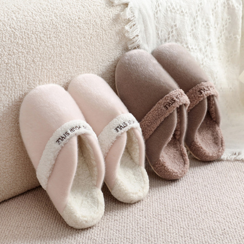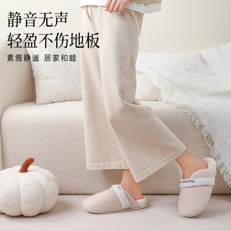 cotton slippers waterproof stain-resistant non-slip couple household autumn soft soled velvet thickened 中文版