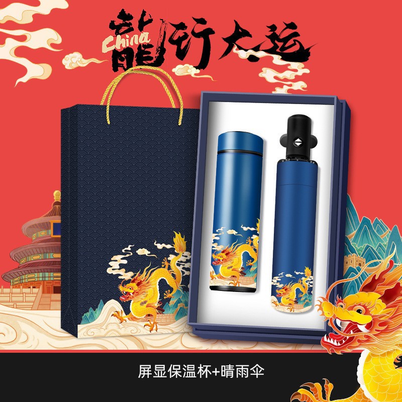 dragon year thermos cup + automatic umbrella [blue]