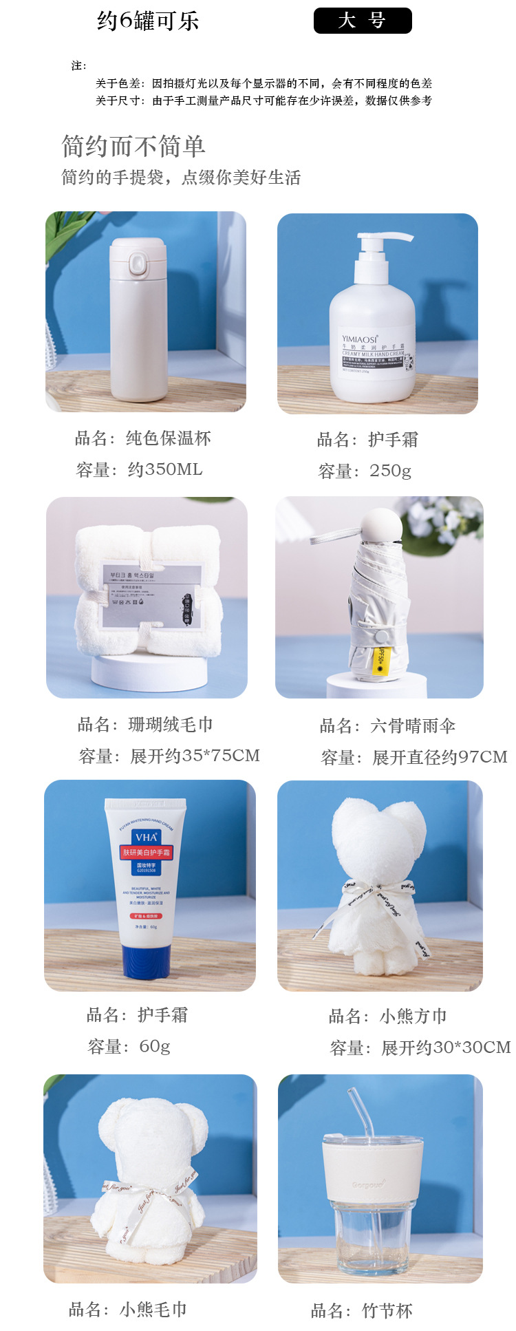 套餐七:渐变保温杯+六骨晴雨伞+软管护手霜