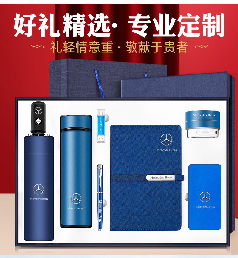 【杯+长扣本+圆笔+16GU盘+伞+音响+金刚电源】蓝色