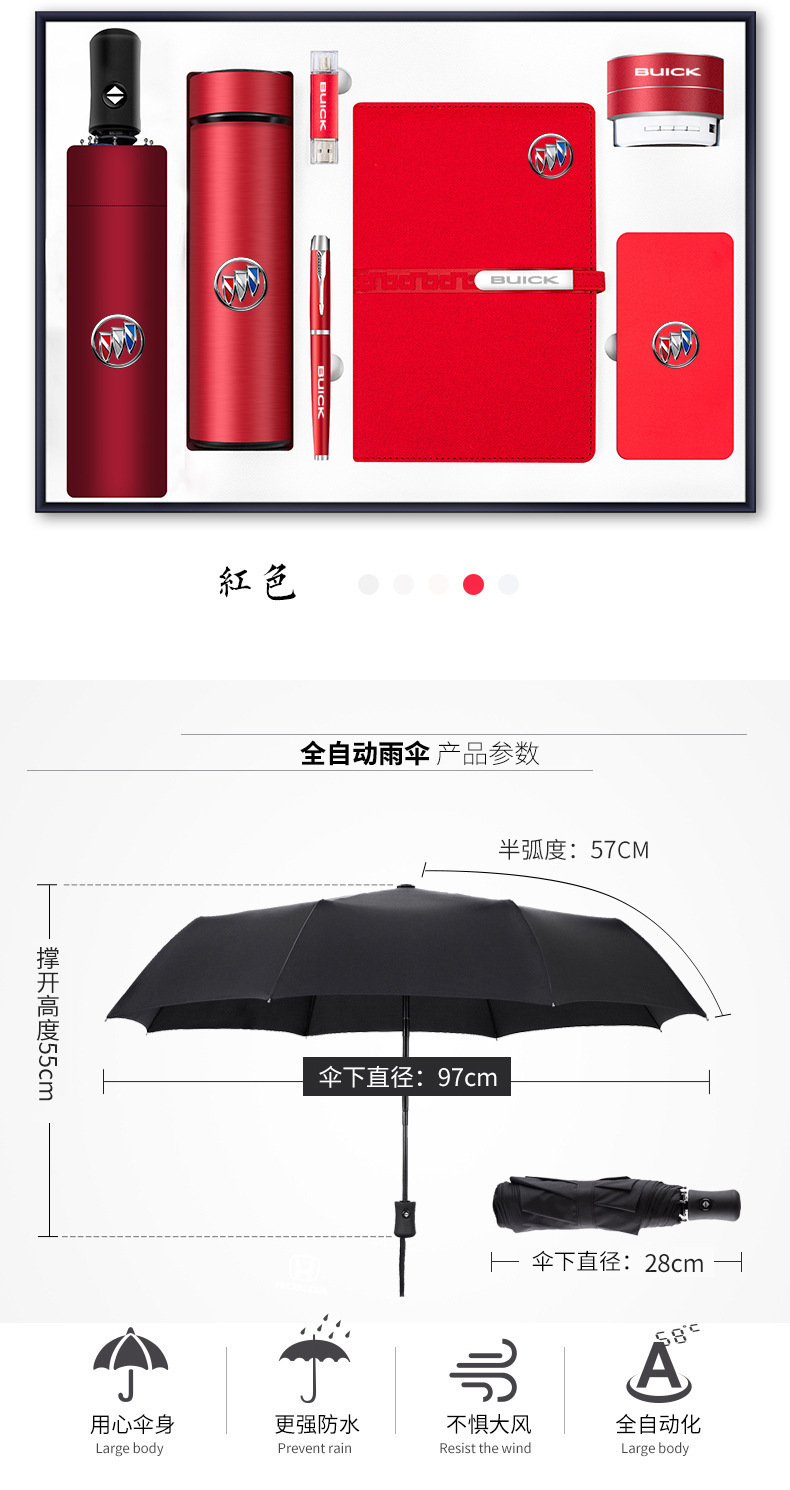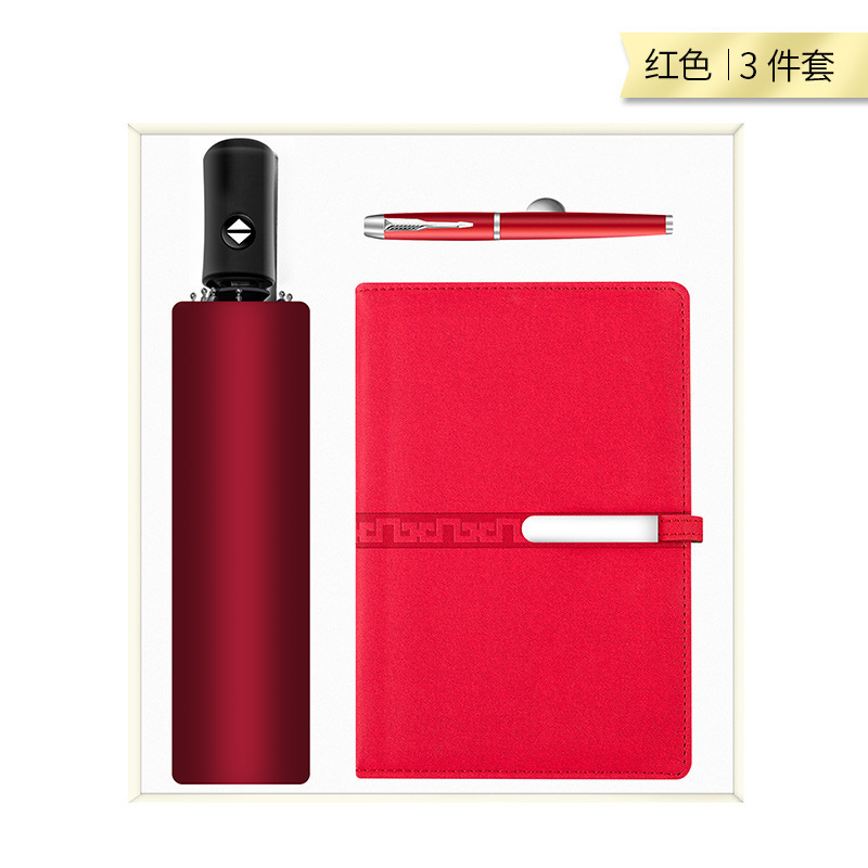 【雨伞+长扣本+杯+圆笔】红色