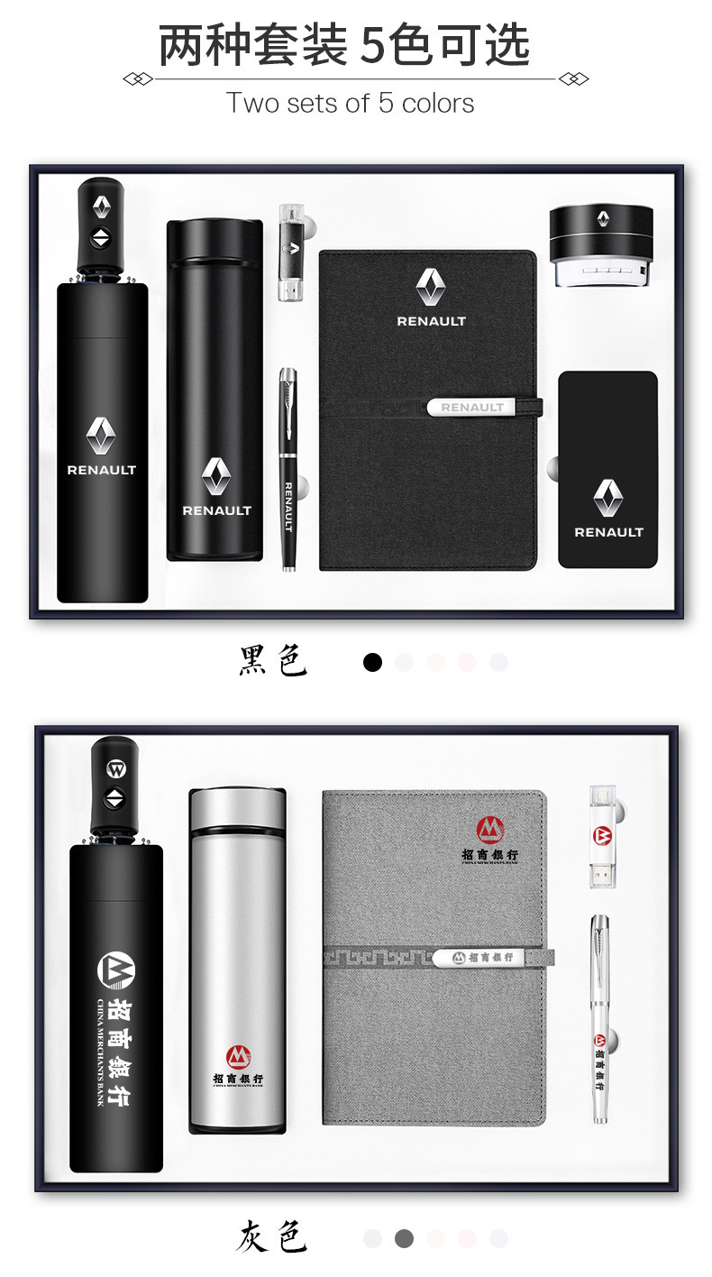 【杯+长扣本+圆笔+16GU盘+伞+音响+金刚电源】灰色