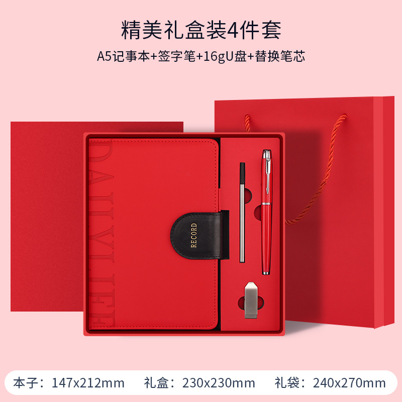 红色礼盒+笔+笔芯+U盘