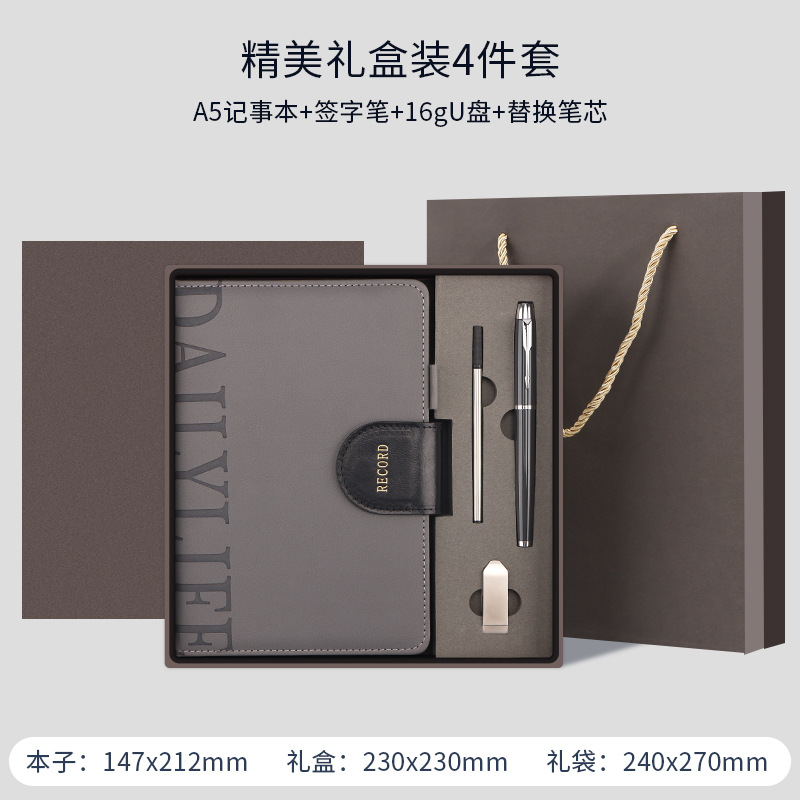 灰色礼盒+笔+笔芯+U盘