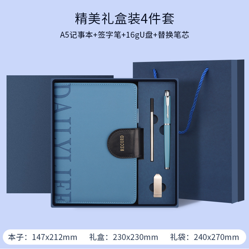 蓝色礼盒+笔+笔芯+U盘