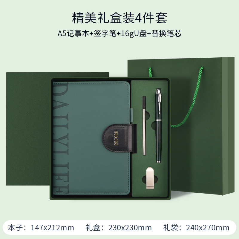 绿色礼盒+笔+笔芯+U盘